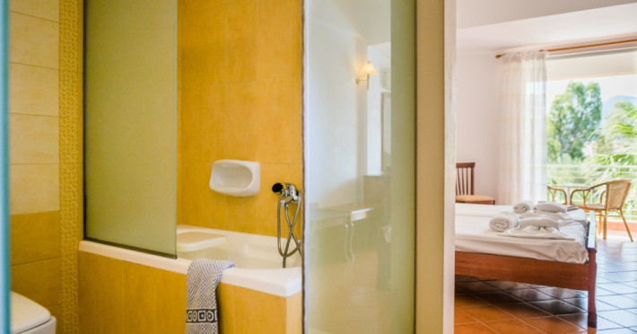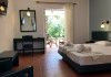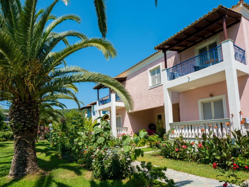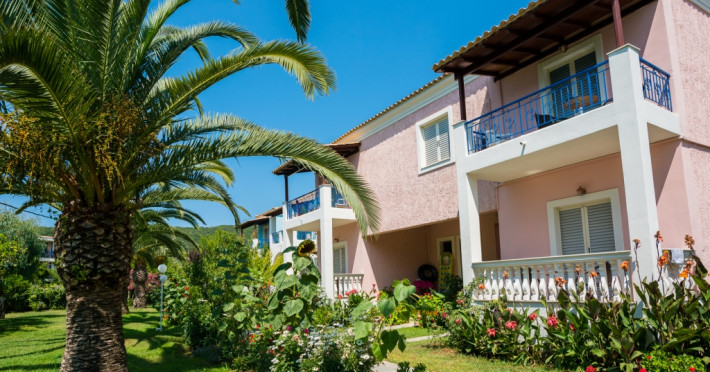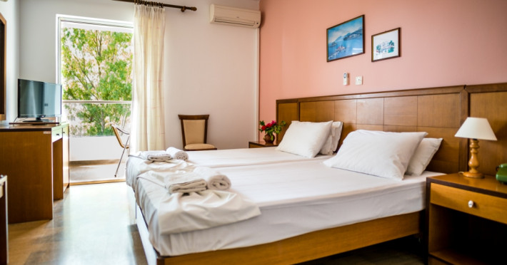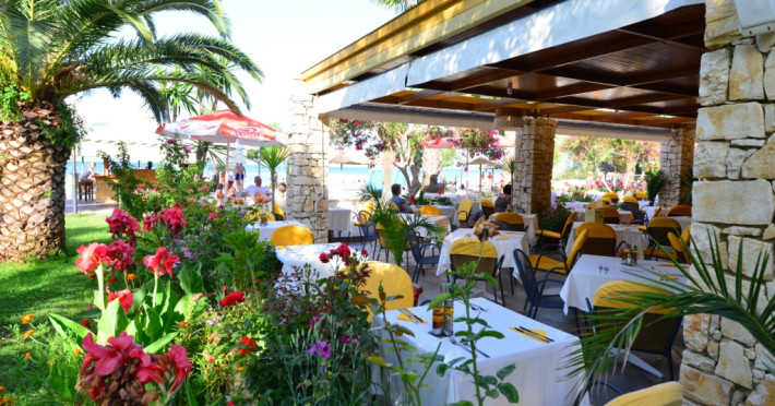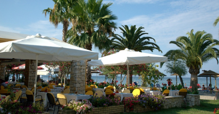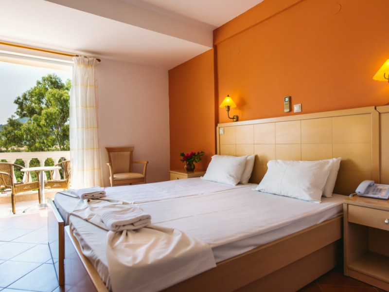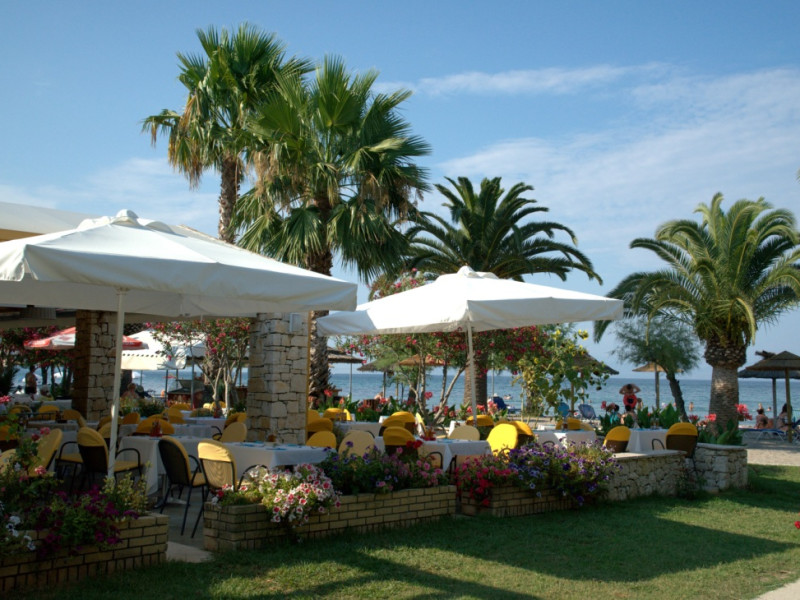Three Stars Hotel is situated in Moraitika, a lively sea resort in the eastern part of the island of Corfu (Kerkira). It consists of 3 buildings. The main building and two complexes of bungalows, which are based on Corfiot architecture style. All rooms are tastefully decorated with a private balcony or terrace and enjoy lovely views over the sea, the mountain or the pool.Three Stars village is surrounded by a lovely garden which is full of blossomed flowers and trees. This oasis offers a peaceful and relaxing environment for its guests. Breakfast and excellent Greek and International cuisine is available in our beachside restaurant. Evening meals are accompanied by Greek music and dancing.Our beach bar serves refreshing drinks and a shop provides beach items and daily press as well as souvenirs. There is also the possibility of aquatic sports.The hotel is located on the beach and is only a 5-minute walk from the centre of Moraitika village and 21 km from the town of Corfu.Meal services Breakfast Continental Plus in buffet form, from 7:00 pm to 10:00 pm
