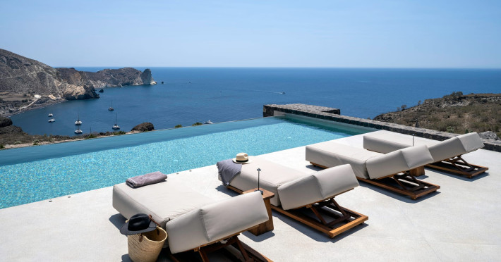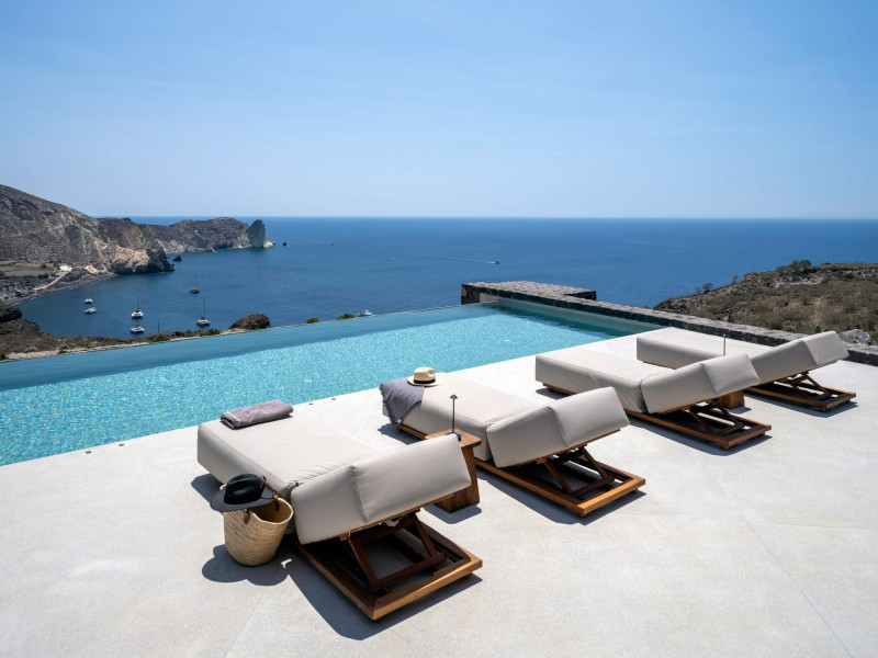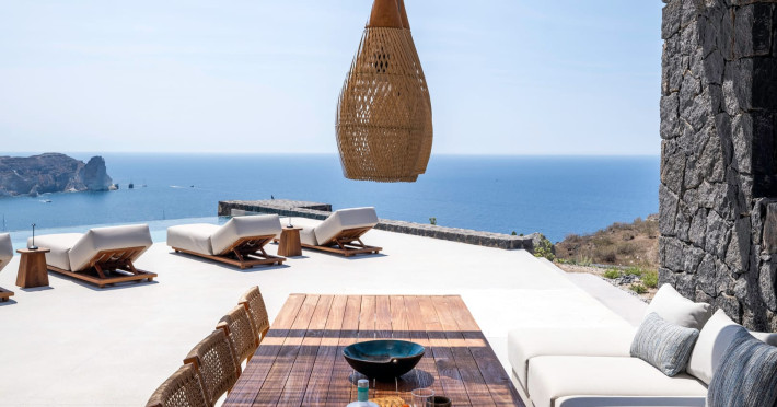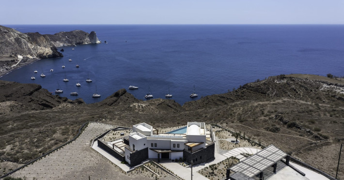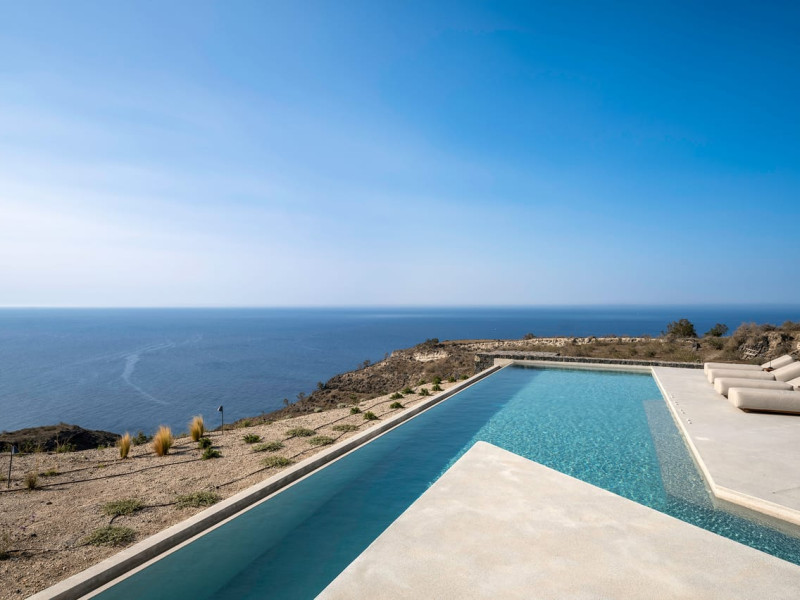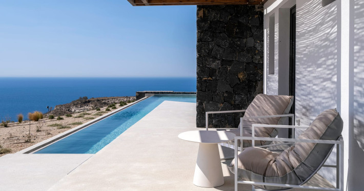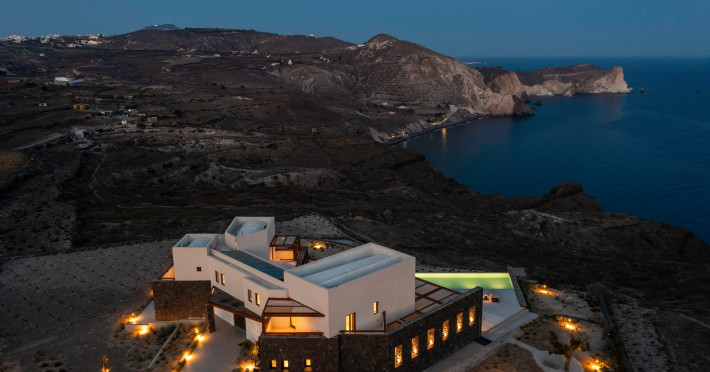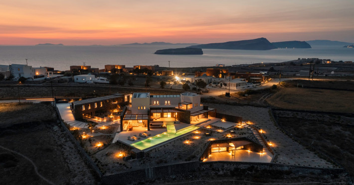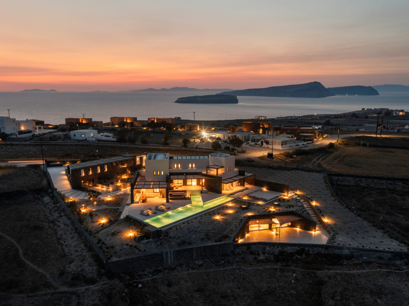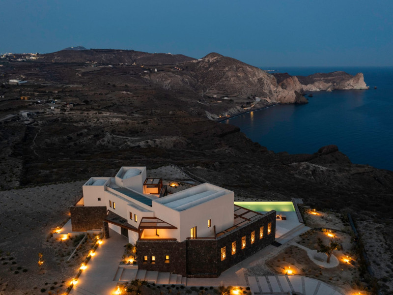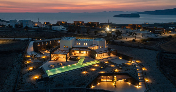 Tucked away in timeless Akrotiri,Acrodise Estate is a sanctuary of stillness and elevated elegance.Designed for those who seek peace, refined comfort and discreet luxury, this exclusive 325 sqm villa unfolds across three levels of curated sophistication — nestled within a private vineyard and overlooking the endless blue of the Aegean Sea.Thoughtfully created to host up to 20 guests in absolute comfort, Acrodise is more than a place to stay — it is a place that commands presence.A setting where barefoot mornings meet fire-lit horizons,where nature’s raw beauty meets architectural grace and quiet grandeur.