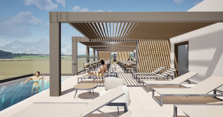 Facilitati hotel: Complexul este format dintr-o cladirea principala si anexa, punand la dispozitia oaspetilor o piscina pe acoperis cu terasa de relaxare si bar la piscina. Sezlongurile, umbrelele si prosoapele sunt gratuite la piscina.