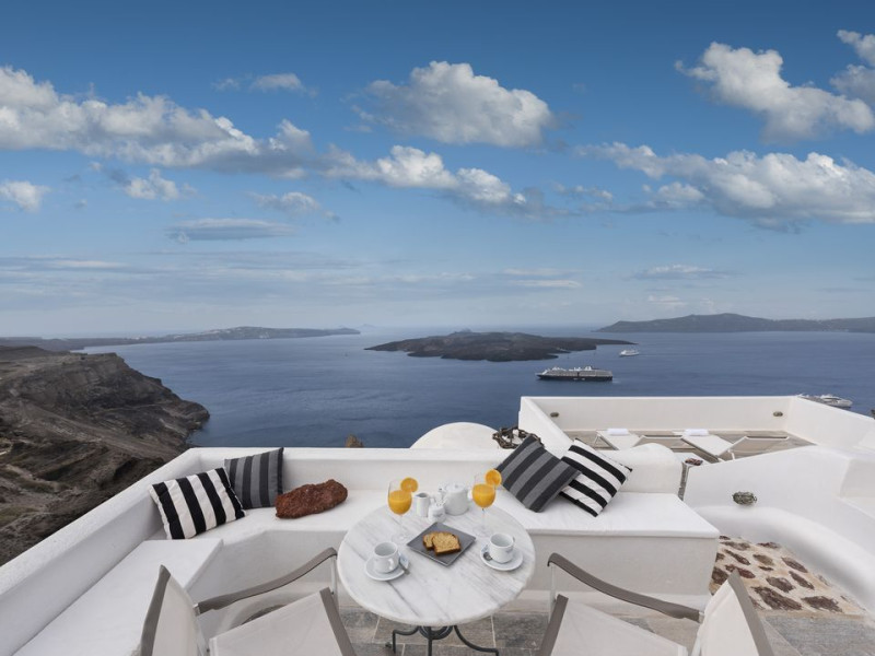 The Aigialos Luxury Traditional Settlement consists of fifteen renovated neoclassical houses that were originally the fine homes of the island's noble captain families. The architecture and design of the houses bring to life the traditional way of life of the island's nobility. Situated on the rim of the caldera, sheer cliffs that rise from the sea, the hotel overlooks the island's famed volcano. It is located on the quiet side of the town of Fira but only a 3-minte wal to the bstling center where all the shops, restaurants, and museums are. FREQUENTLY ASKED QUESTIONS - FAQQ: What is the best way to make a reservation?A: You can reserve directly and securely on our website or via trusted booking platforms. Booking direct often allows for special offers and better flexibility. You can always ask to us to match a better rate found on another website.Q: What is your cancellation policy?A: The cancellation terms depend on the rate you select. For fully refundable rates the cancellation deadline is specified at booking; please review the terms of your chosen rate.Q: Can I request a particular residence or room type?A: Yes — during booking you may select your preferred category (e.g., Volcano view suite, Superior residence) and even request us to assign a specific room within that category, if so desired. We will try to accommodate your preference subject to availability.Q: What time is check-in?A: Check-in begins at 15:00.Q: What time is check-out?A: Check-out is at 11:00.Q: Is late check-out or early check-in possible?A: We will do our best to accommodate requests for early arrival or late departure, subject to availability and may incur an additional charge. If you provide us with your arrival time in advance, we will do our best to prioritize housekeeping tasks to match these requests.Q: Where is the hotel located?A: Aigialos is situated in Fira, Santorini, perched on the Caldera rim. We are located very close to the town center and only 100 meters from the transfer drop off point.Q: How far is the airport or ferry terminal?A: From Santorini (Thira) Airport (JTR) it’s approximately a 13-minute drive (5,6 km). From the port, it is a 17-minute drive (7,5km). Please contact us in advance to help with your transfer arrangements. Q: Is parking available?A: There is no on-site parking as the hotel is located on the caldera cliff. Free off-site parking is available nearby (150 meters and 300 meters). Please note that parking spaces are limited, especially during peak season.Q: Is it advisable to rent a car while visiting Santorini?A: It really depends on the season. During the early and late summer periods, having a rental car available can be great fun as it provides the freedom in moving around between beaches, cultural sites, villages, and wineries. Renting from a trustworthy agency and one that is close by the hotel are important.Q: What is the character of the suites/residences?A: The hotel is composed of 18th- and 19th-century neoclassical houses, restored into luxurious residences with traditional architecture, marble floors, antiques, and modern amenities.Q: Do all rooms have Caldera or sea-view?A: All the residences and suites offer balconies or terraces overlooking the Caldera and Aegean Sea. Most of the rooms offer a volcano and/or sunset view as well.Q: Do all rooms have private balconies?A: The majority of the residences and suites offer private balconies or terraces. Only the Superior Residences and the Authentic Santorinia Residences offer a shared terrace.Q: Are connecting or family rooms available?A: The hotel has one family room, the Mansion Sunset View, which offers two bedrooms and two bathrooms, a large living area and a spacious private terrace with stunning views. Certain other room categories, like the Authentic Santorinia Residence also offer accommodation for extra persons on traditional sofas that are turned into sofa beds for the night.Q: Is there a swimming pool?A: Yes, a small outdoor plunge pool is available by the restaurant area close to the reception. One can enjoy a refreshing drink from the bar as well.Q: Do you have a restaurant and breakfast service?A: Yes — we provide a la carte breakfast and have a restaurant offering Mediterranean cuisine. Guests often highlight the breakfast service from their balcony.Q: Is room service available?A: Yes — room service is available during restaurant operating hours. Outside of those hours, the receptionist on duty would be able to offer drinks and beverages.Q: Do you have spa / wellness facilities?A: While Aigialos is primarily a luxury boutique residence rather than a full-scale spa resort, spa treatments can be arranged on request either with a in room therapy or to a close by spa.Q: Is WiFi included?A: Yes — complimentary WiFi is available throughout the property.Q: Is the hotel suitable for children?A: The hotel’s nature, steep paths and historic architecture mean it may be less suited for families with very young children or infants. For this reason, we accept children over the age of 6. Please contact us to discuss suitability for your family’s specific needs. Guest reviews mention steep steps and caution for younger children.Q: Are extra beds or cots available?A: Extra beds may be provided in selected room types on request. Please contact us ahead of your stay for arrangements. Baby cots are not available as we accept children over the age of six.Q: Are pets permitted?A: No – the hotel does not allow pets.Q: Are there elevators? Are rooms suitable for guests with mobility issues?A: Due to the historic nature and cliffside location of the property, there are numerous steps and no elevator access. Guests with mobility concerns should contact us ahead of time so we can discuss the most appropriate residence.Q: Is the path to the hotel steep or challenging?A: Compared to other cliffside properties, the Aigialos Hotel has very easy access, with a limited number of steps to reach it from the transfer drop 