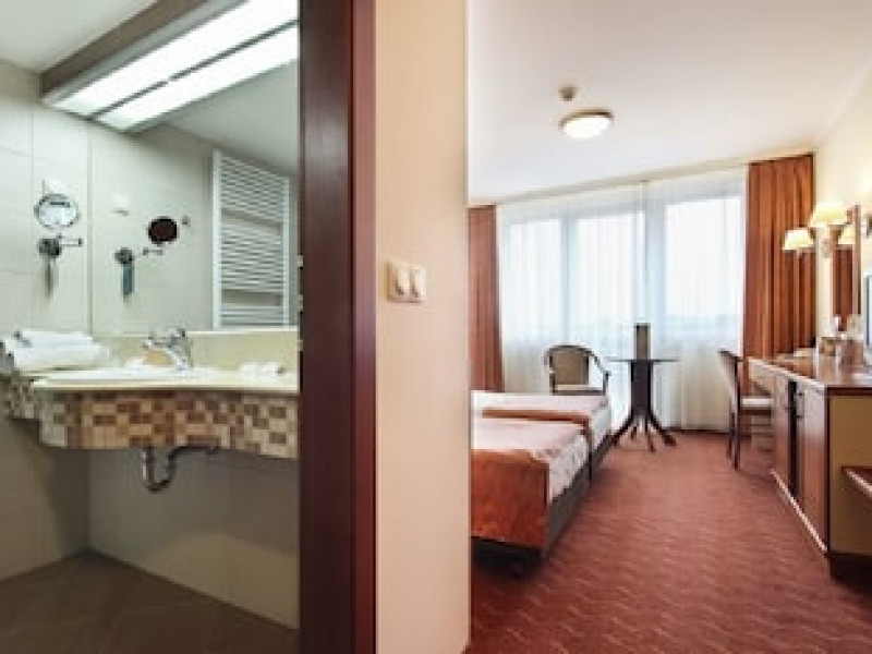 Connected to a shopping center. When you stay at Airport Hotel Budapest in Vecsés, youll be connected to a shopping center and 13 minutes by car from Koki Terminal. This luxury hotel is 11.6 mi (18.7 km) from Gellert Thermal Baths and Swimming Pool and 11.3 mi (18.2 km) from Vaci Street. Make yourself at home in one of the 110 guestrooms featuring minibars and LCD televisions. Rooms have private balconies. Complimentary wired and wireless internet access keeps you connected, and satellite programming provides entertainment. Private bathrooms with showers feature rainfall showerheads and complimentary toiletries. Enjoy international cuisine at Avion Restaurant, a restaurant which features a bar/lounge, or stay in and take advantage of the 24-hour room service. Dont miss out on recreational opportunities including a health club and a sauna. This hotel also features complimentary wireless internet access, concierge services, and babysitting.