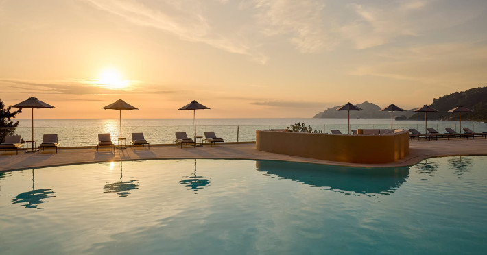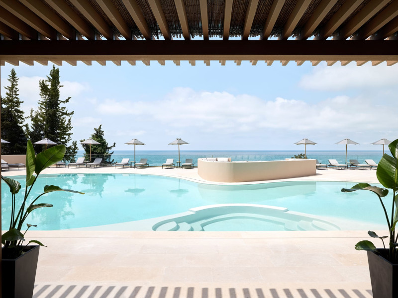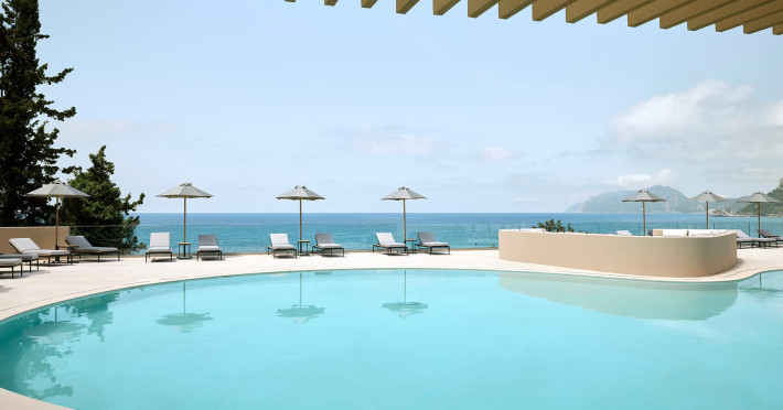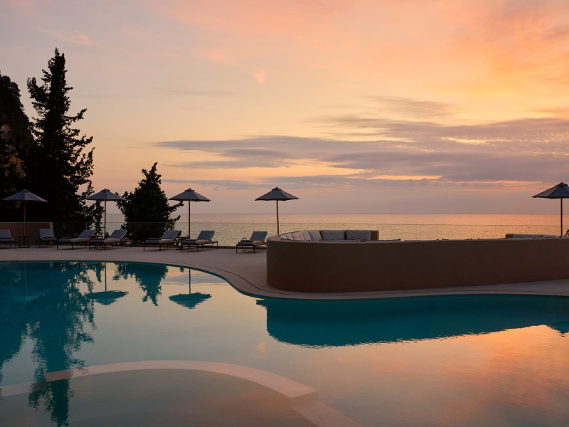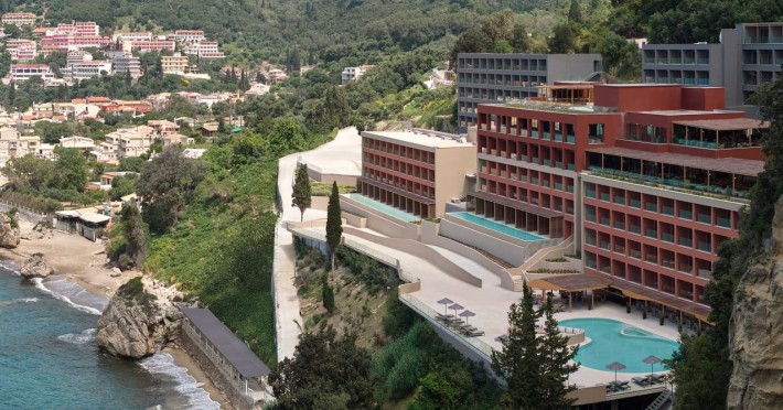 Nestled within the breathtaking landscapes of Corfu, Alkyna Lifestyle Beach Resort - Adults Only offersdiscerning adults an unparalleled escape. Set against a stunning cliffside backdrop with captivatingsea views, the resort invites guests to experience a sense of elevation, both physically andexperientially.Here, the concept of adults-only holidays is redefined. Accommodation, dining, wellness, andactivities seamlessly blend to enhance not just vacation moments, but the entire way of life.From top-tier services and in-room indulgences to themed gastronomic spaces celebrating localcuisine, Alkyna leaves no detail overlooked.The resort boasts three distinct restaurants offering a fusion of local and international cuisine,two of which feature menus crafted by Michelin star holders -Trastelis Group-. Additionally, guestscan unwind at one of the four bars scattered throughout the property.Featuring 349 rooms, suites, and villas with private pools and breathtaking sea or pool views,Alkyna caters to every preference. The Wellness & Spa experience reflects the resort’s dedicationto providing a rejuvenating sanctuary for both body and mind.