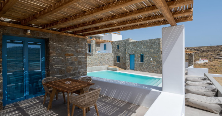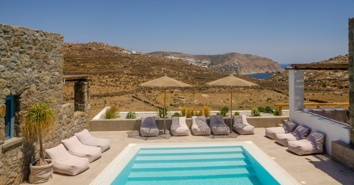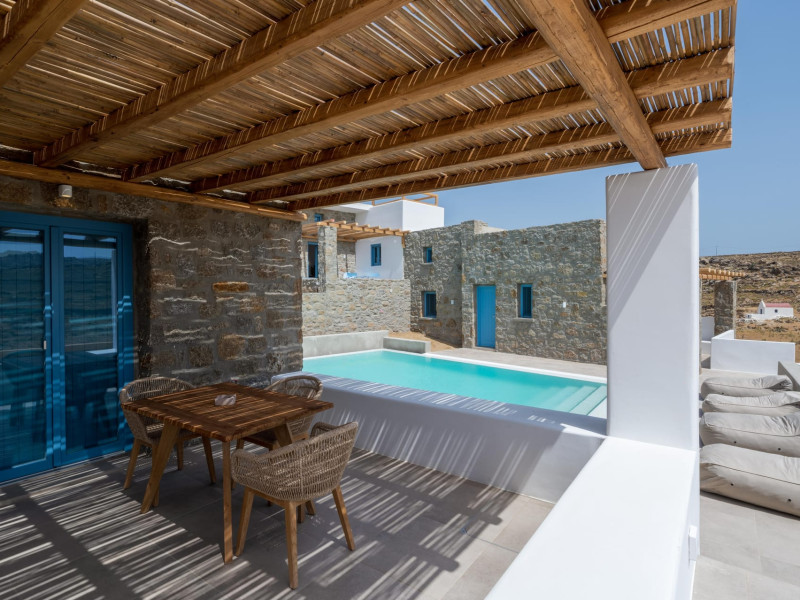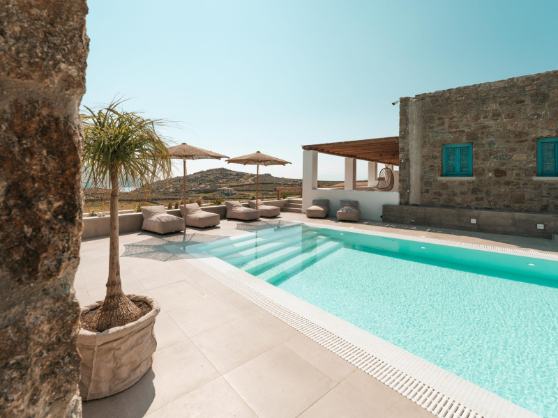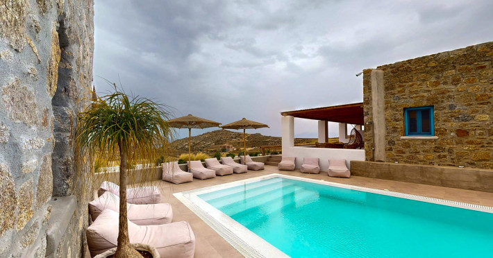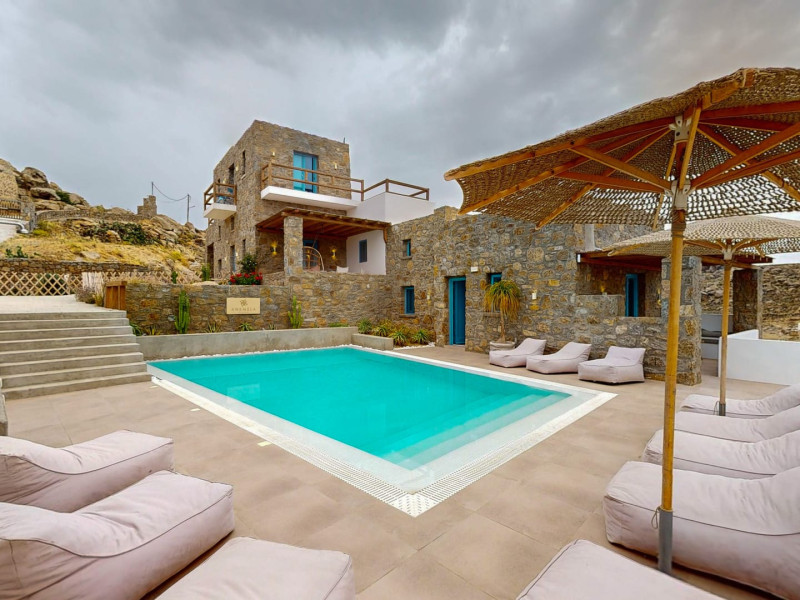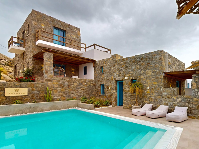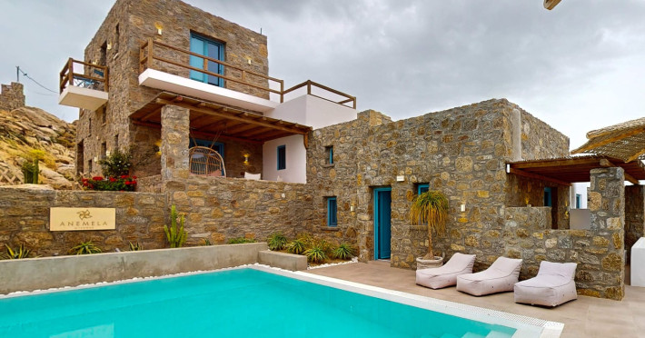 Anemela in Greek means… stress free, relaxed, leisure. Our philosophy is to live carefree, happily, in tranquility. Let go of the stress of everyday life and discover another side of Mykonos.The interior design of Anemela Villas And Suites has been undertaken by the award-winning and renowned interior architect Notis Christodoulou, with his own TV show about decoration, together with the specialist for Cycladic architecture Eleni Akermanoglou. At Anemela Villas And Suites we care about your comfort, which is why we have equipped all rooms with the award-winning and world-renowned King Koil anatomical mattresses.At Anemela Villas And Suites you will literally feel "at home". All apartments have a large kitchen, with built-in oven, modern ceramic hobs, large fridge-freezer, Nespresso coffee machine, kettle, toaster and kitchen utensils, so you can prepare your breakfast or lunch.All apartments of Anemela Villas And Suites have free wifi 50 mbps, air conditioning, smart TV, open wardrobe with shelves, hairdryer, iron steamer to freshen your clothes, safe, smoke alarm and security lighting. Outside there are security cameras, comfortable free parking, and a garden in harmony with the Mykonian flora.We accept children over 14 years old.