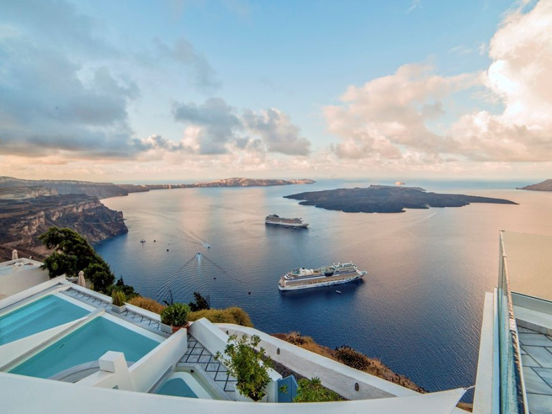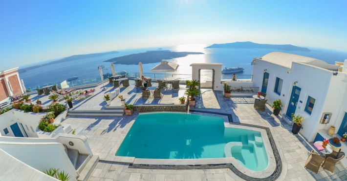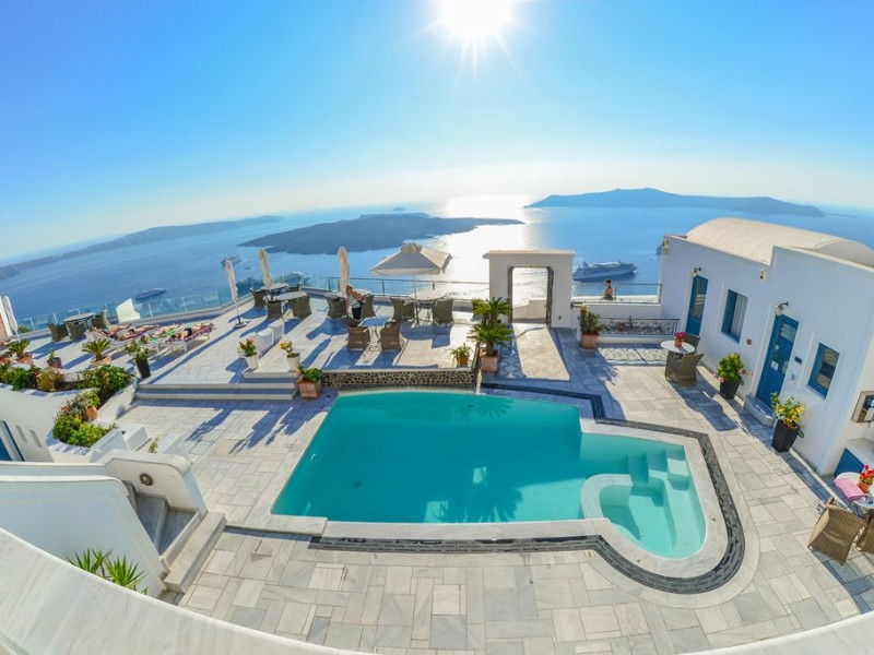Anteliz stands nestled on the hills of Fira, overlooking the Santorinian Caldera and the Aegean Sea.Our small boutique hotel with its unique and relaxing atmosphere, offers unobstructed panoramic view to the surreal landscape of Santorini with its vast curtain wall of multicolored cliffs.Set in a serene environment, amidst the lapis lazuli Cycladic sea and the imposing lava rocks, Anteliz captures the essence of Theran design, culture and tradition.Our guests have direct access to Fira, the capital of the island and the nearby villages of Fira and Imerovigli.Discover Santorini, a unique destination in the Greek islands, steeped in legend and mystery, a mythical ancient island that endured one of the largest volcanic eruptions in history.We will be delighted to share our profound knowledge of Aegean's most beautiful island, giving you inside information that will ensure a memorable experience.Dive in our refreshing pool, enjoy delicious local wines in our sunset terrace or just wander in the whitewashed rims of Santorini.