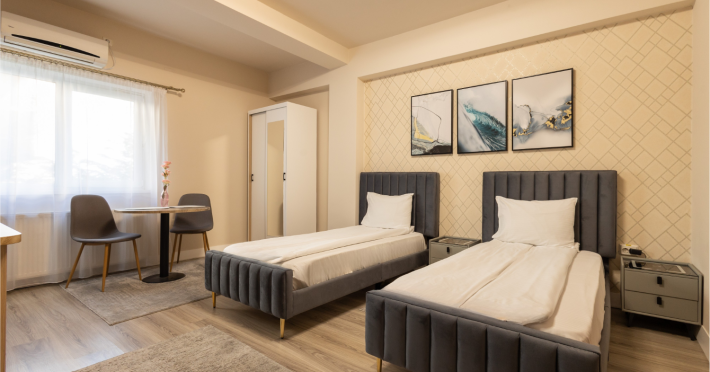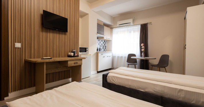Apart Hotel Bonjour Cluj se afla in Cluj-Napoca, la 3,6 km de Palatul Banffy, si pune la dispozitie unitati de cazare cu climatizare si WiFi gratuit. Fiecare unitate include o chicineta complet utilata, cu masa, un televizor cu ecran plat cu canale prin cablu si o baie proprie cu dus, articole de toaleta gratuite si un uscator de par. Oaspetii au la dispozitie de asemenea un frigider si un cuptor cu microunde, precum si un fierbator electric. Hotelul se afla la 4 km de Muzeul Etnografic al Transilvaniei si la 4,9 km de Cluj Arena. Aeroportul International Avram Iancu Cluj se afla la 9 km.