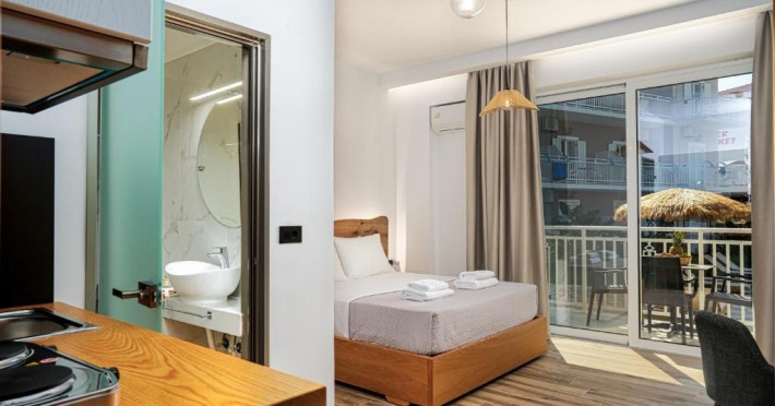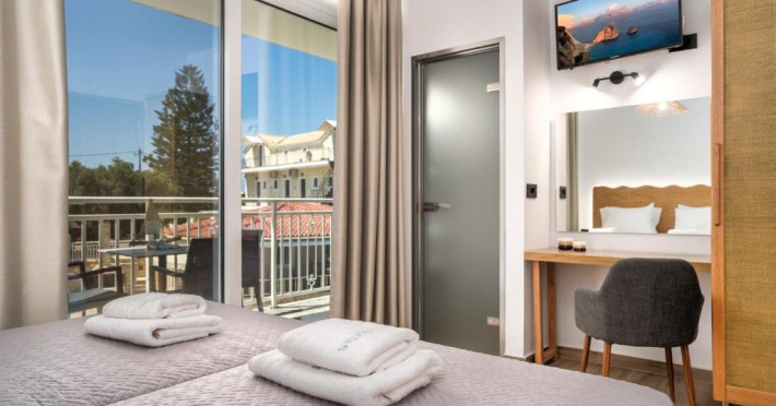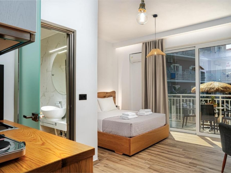 Hotelul nostru este situat in statiunea Amoudi, o zona linistita si frumoasa, aproape de statiunile mai aglomerate Alykes si Alykanas.