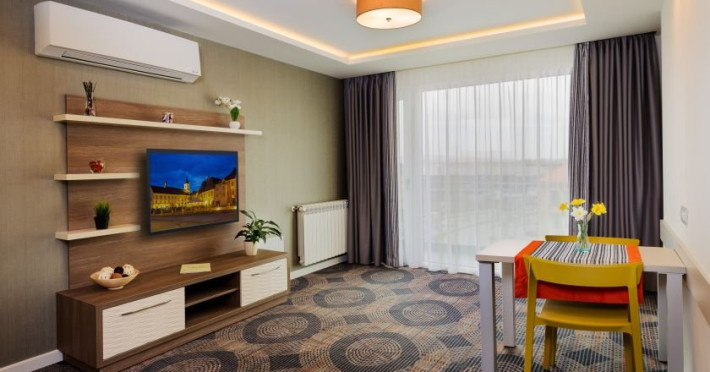 DESCRIERE UNITATE DE CAZARE Plaza35 Hotel este amplasat ideal, chiar in inima orasului Sibiu. Plaza35 inseamna apartamente spatioase, luminoase si inteligent amenajate - alegerea smart pentru cei care vor confort premium, fara formalitati.