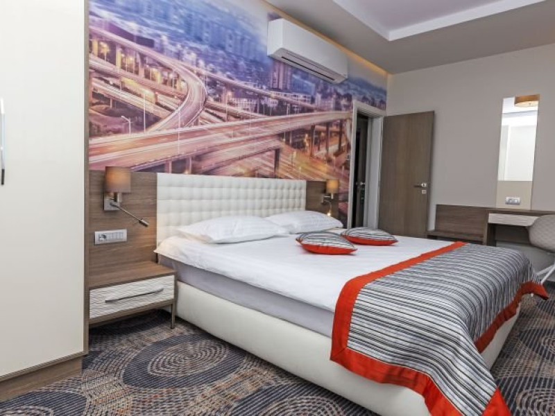 DESCRIERE CAMERE PLAZA 35 pune la dispozitie 32 de studiouri si apartamente complet mobilate si utilate, de diferite dimensiuni si tarife ce pot satisface toate cerintele tale. Studioul are o suprafata de 30 mp si este format din dormitor cu pat matrimonial, chicineta si baie. Apartamentul Twin are o suprafata de 50 mp si este format din dormitor cu doua paturi single, living, chicineta, baie si balcon. Apartamentul City are o suprafata de 50 mp si este format din dormitor cu pat matrimonial, living, chicineta si baie. Apartamentul Business are o suprafata de 50 mp si este format din dormitor cu pat matrimonial, living, chicineta, baie si balcon. Dotari: cabina de dus, WiFi, halat si papuci de casa, articole de toaleta, minibar, seif, aer conditionat, birou, uscator de par, Welcome kit (cana fierbator apa, espressor, ceai si cafea inclusa)