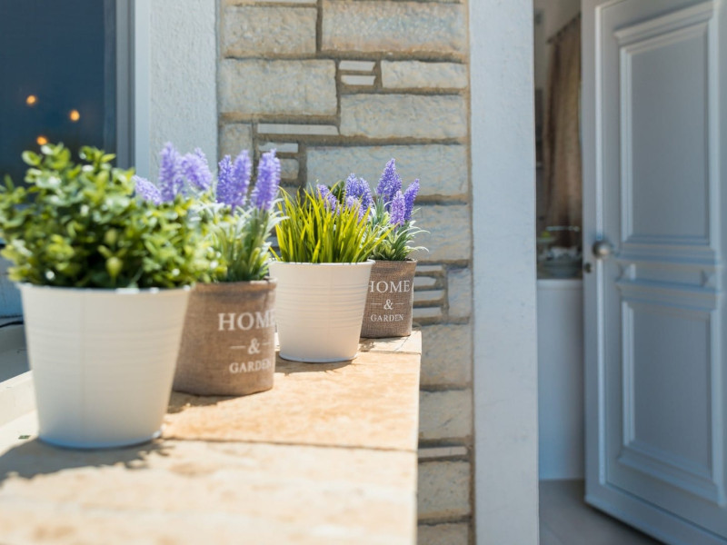 Sofia Apartment (1st floor, for up to 4 guests) - (Outside the apartment complex – on the upper floor of the Pyramid Seaside Restaurant and Bar)Sofia Apartment is a spacious and fully equipped 1st-floor accommodation overlooking the sea and the beach of Pyramid City. Its decoration is characterized by romantic elements and elegant shades of English country style for maximum relaxation and a sense of everyday luxury!It is a great and value-for-money holiday accommodation, ideal for a group of friends who enjoy staying at the heart of a tourist location!