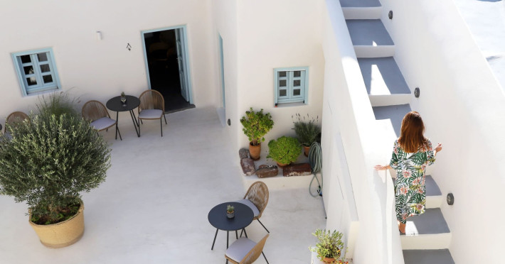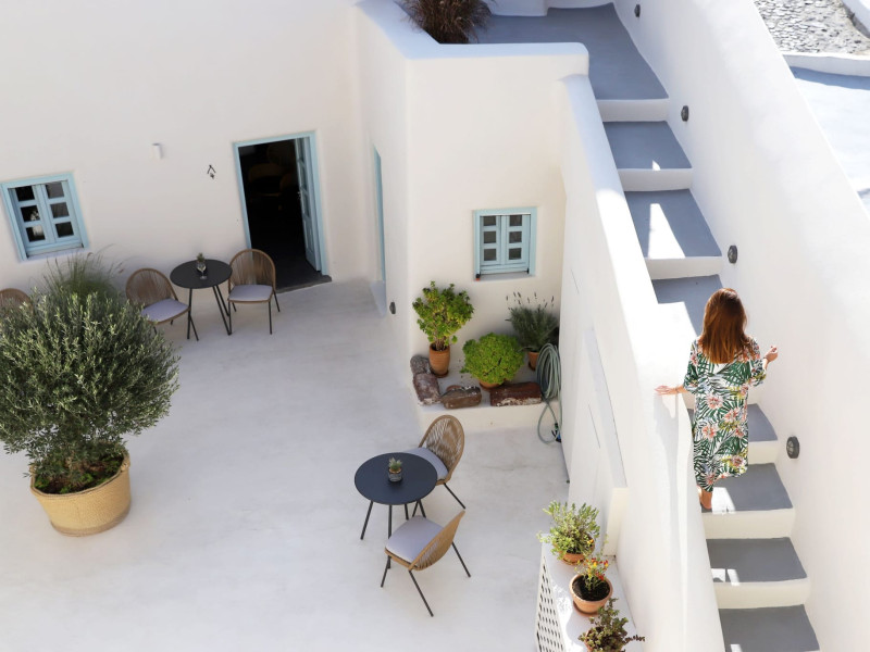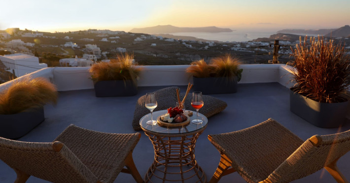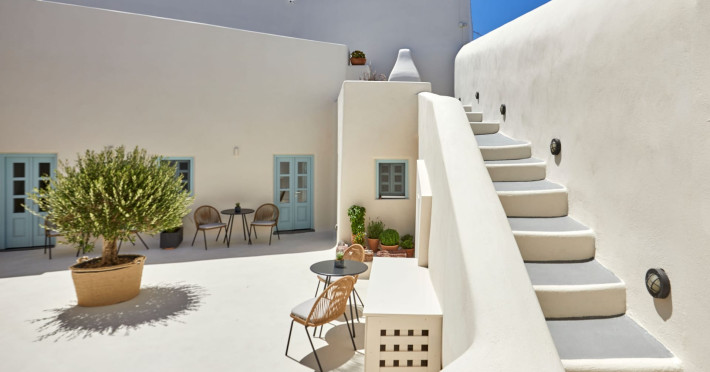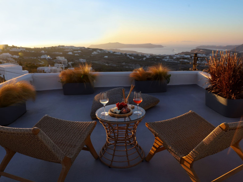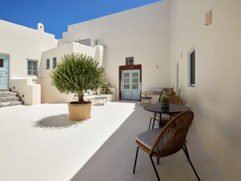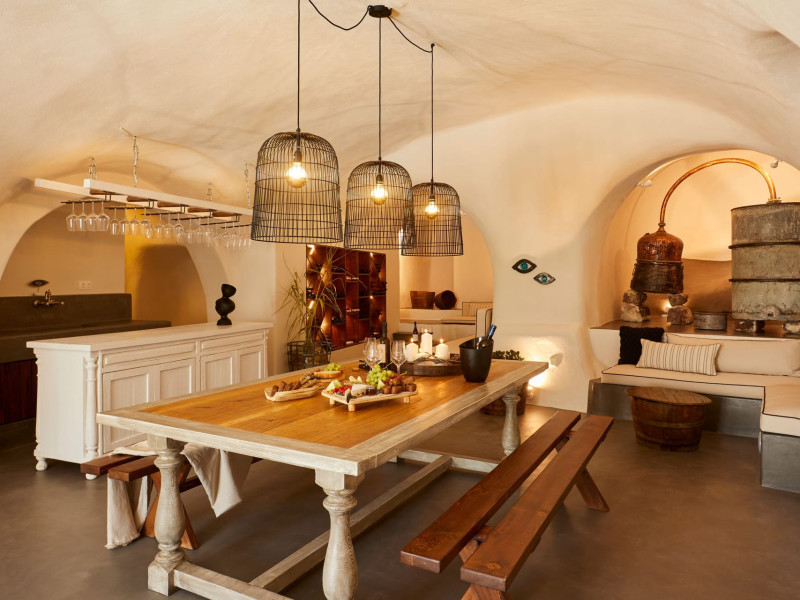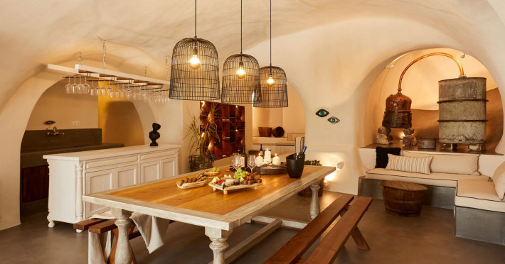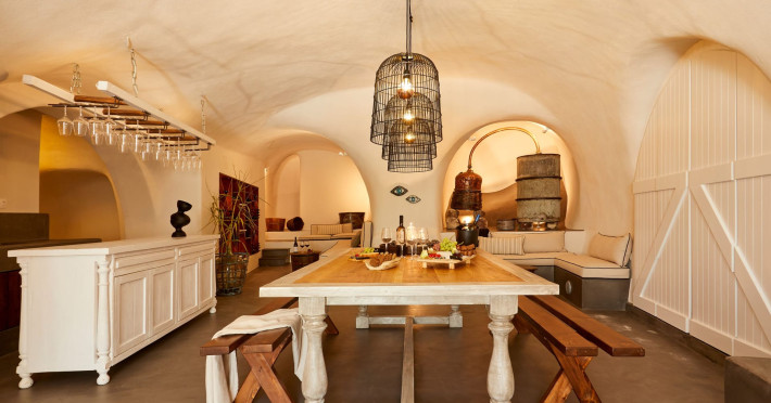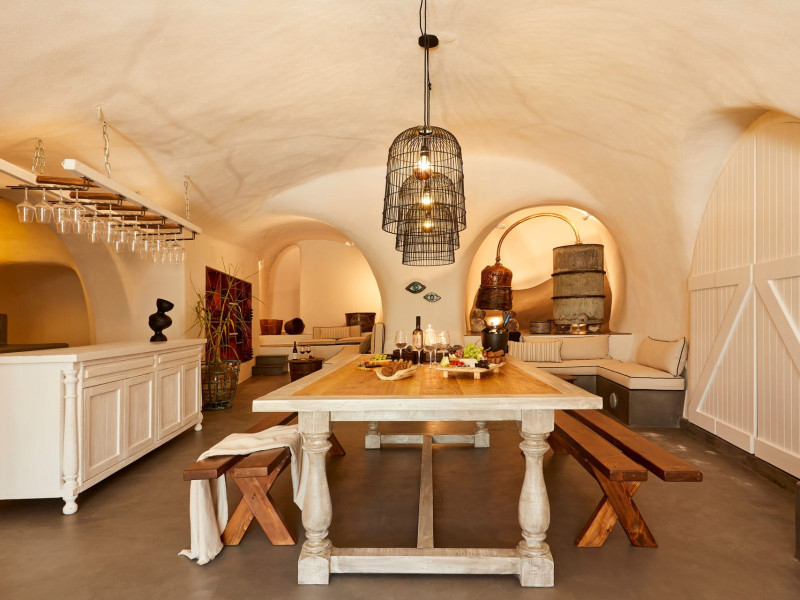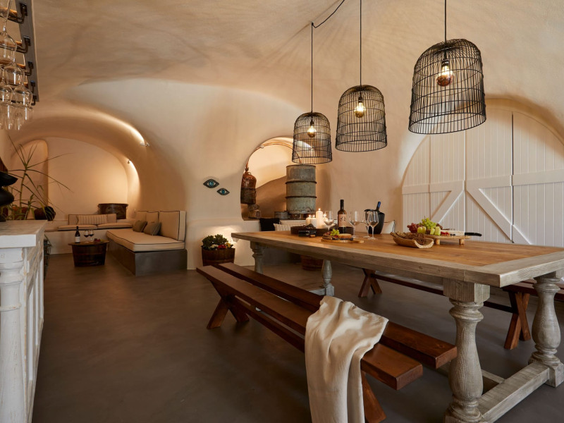 Overlooking the iconic caldera from the side of Pyrgos Village hilltop, Arxegono Cave Housesfeatures four charming cave residencies of an 1870 family-owned winery, thoroughly renovated in 2023 with an authentic feel, in harmony with its natural environment.Carved through the rock within the boundaries of the old castle, and only a short walk away from the village center, Arxegono Cave Houses invites you to experience a dreamlike vacation in a tranquil setting of elegance, tradition, and warm Greek hospitality, always welcome in our home!Built with the perfect harmony of the traditional Santorinian architecture, the cave residencies encircle an inviting courtyard, while the main winery facility at the very heart of the building, is now used as the gracious hall that can host romantic private dinners, special occasion celebrations or can make the perfect setting to simply relax, enjoying an aromatic glass of wine.The serene, spacious terrace at the highest point of the building, is the highlight of the facility, privileged withmesmerizing views over Santorini and the iconic caldera, especially during the evenings in sunset magic.Subtle elegance, stunning caldera views and warm Greek hospitality blend into a unique ambience for guests to indulge in, and experience a relaxing, memorable stay.ARXEGONO STORYArxegono in Greek means “the one born in ancient times”.Built in 1870 on the northern side of Pyrgos hilltop, Arxegono Cave Houses is a traditional family-owned winery, now featuring an elegant complex of four cave residencies.