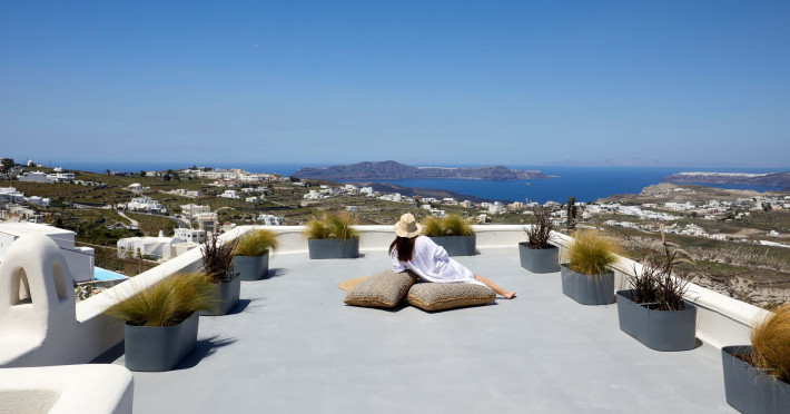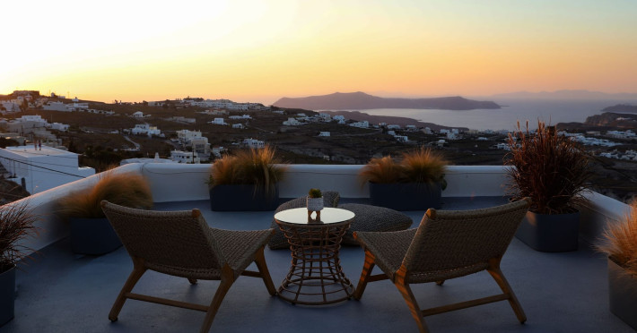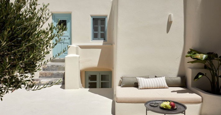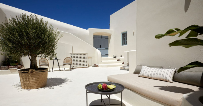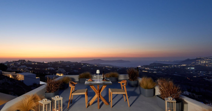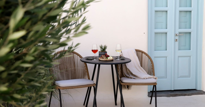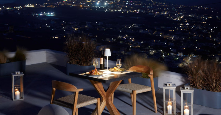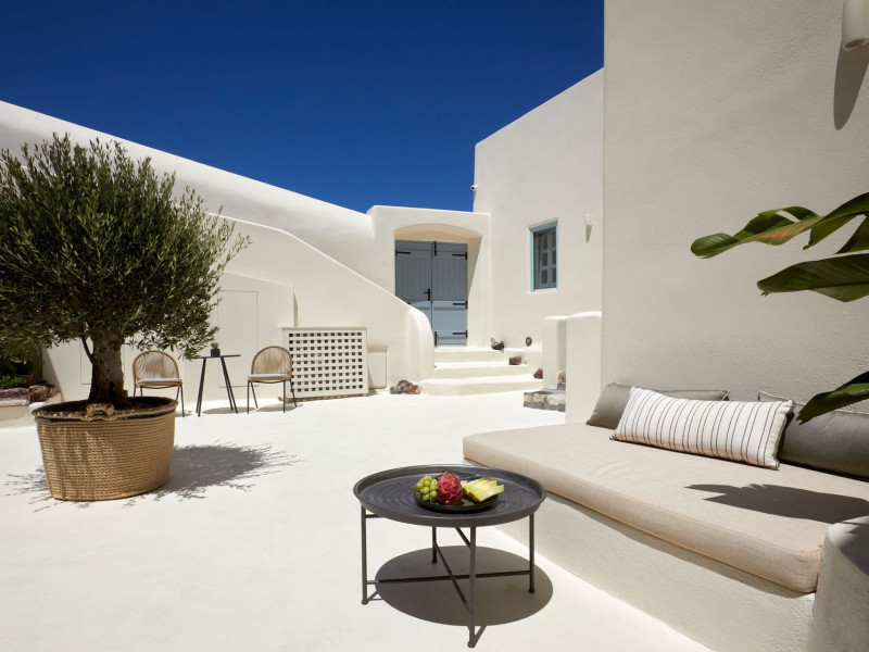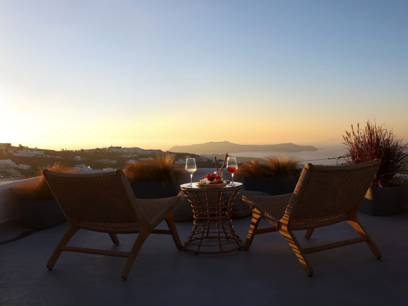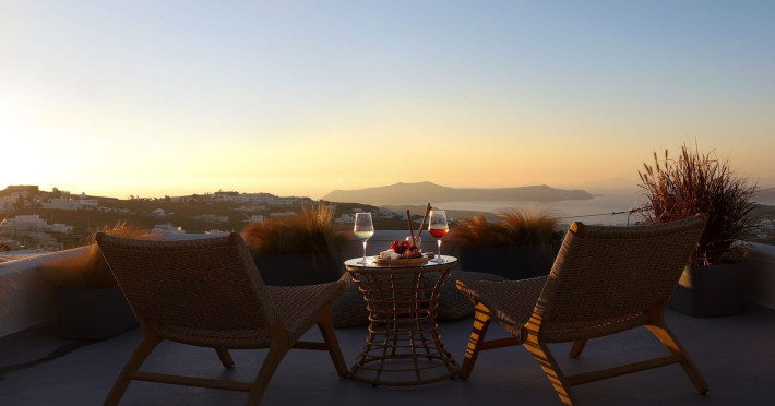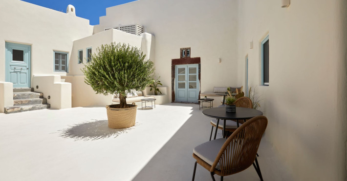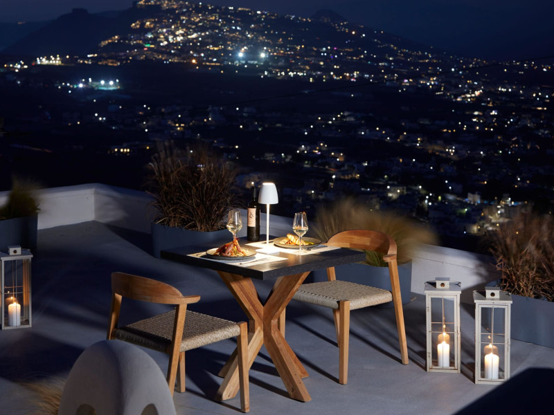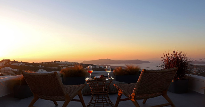 Overlooking the iconic caldera from the side of Pyrgos Village hilltop, Arxegono Cave Housesfeatures four charming cave residencies of an 1870 family-owned winery, thoroughly renovated in 2023 with an authentic feel, in harmony with its natural environment.Carved through the rock within the boundaries of the old castle, and only a short walk away from the village center, Arxegono Cave Houses invites you to experience a dreamlike vacation in a tranquil setting of elegance, tradition, and warm Greek hospitality, always welcome in our home!Built with the perfect harmony of the traditional Santorinian architecture, the cave residencies encircle an inviting courtyard, while the main winery facility at the very heart of the building, is now used as the gracious hall that can host romantic private dinners, special occasion celebrations or can make the perfect setting to simply relax, enjoying an aromatic glass of wine.The serene, spacious terrace at the highest point of the building, is the highlight of the facility, privileged withmesmerizing views over Santorini and the iconic caldera, especially during the evenings in sunset magic.Subtle elegance, stunning caldera views and warm Greek hospitality blend into a unique ambience for guests to indulge in, and experience a relaxing, memorable stay.ARXEGONO STORYArxegono in Greek means “the one born in ancient times”.Built in 1870 on the northern side of Pyrgos hilltop, Arxegono Cave Houses is a traditional family-owned winery, now featuring an elegant complex of four cave residencies.