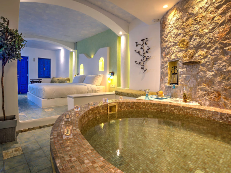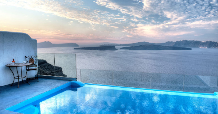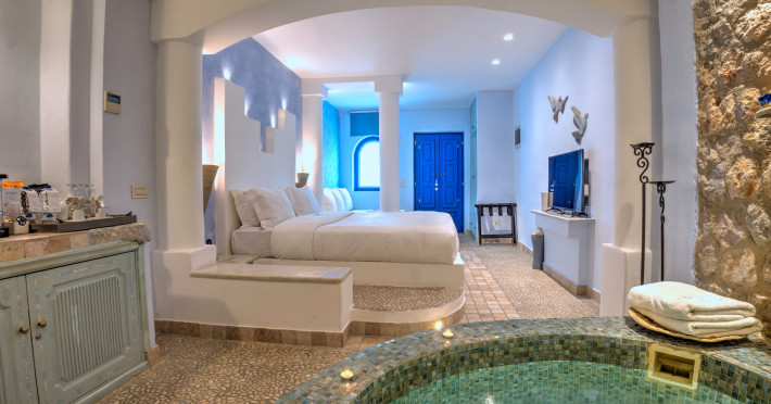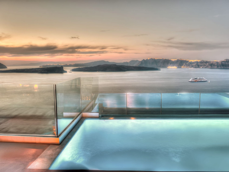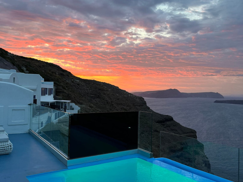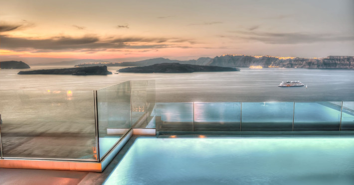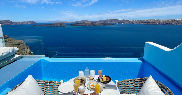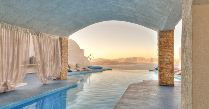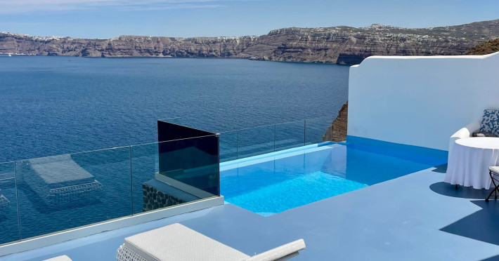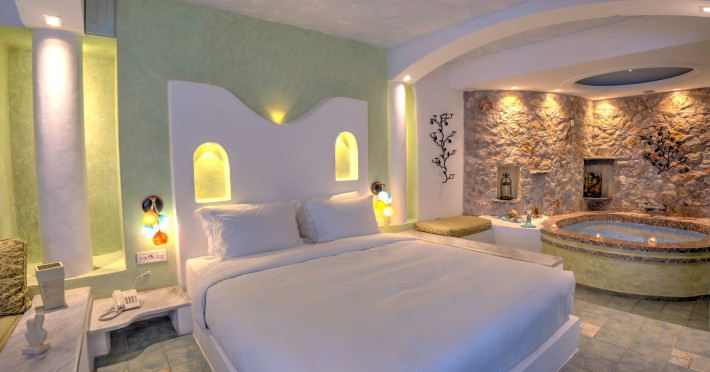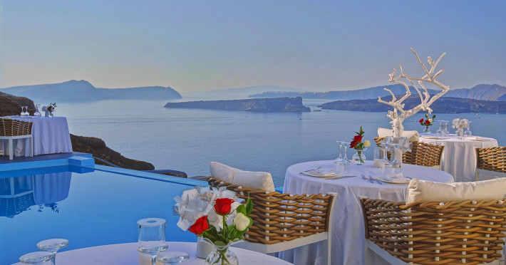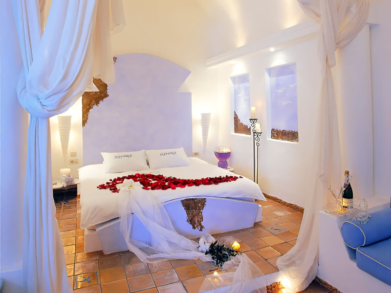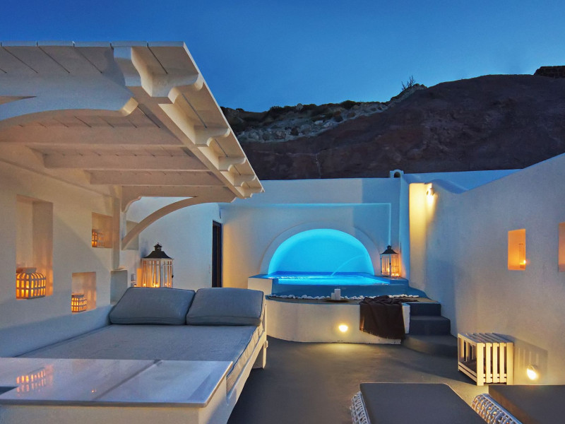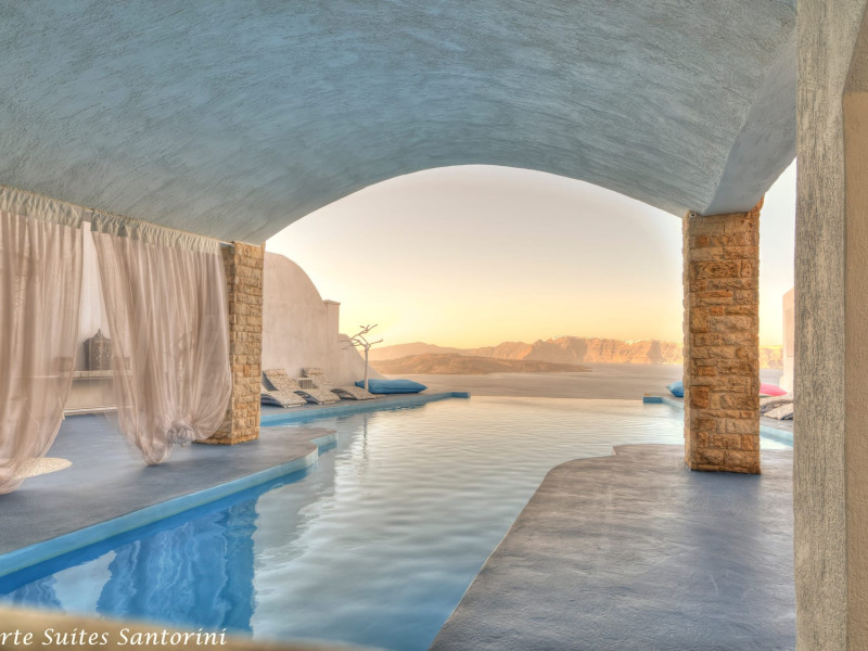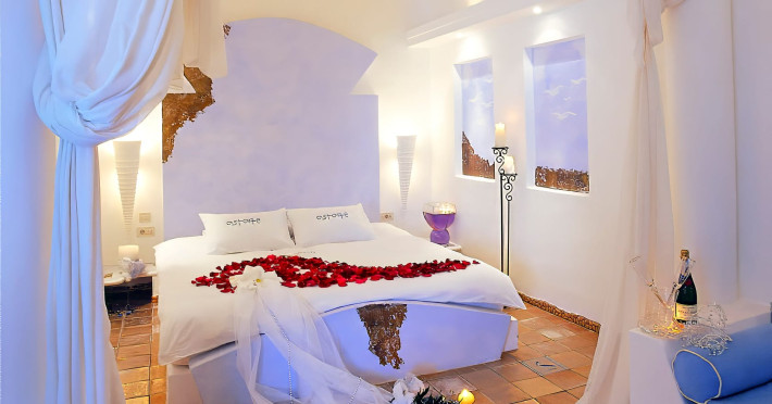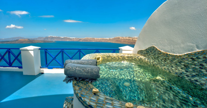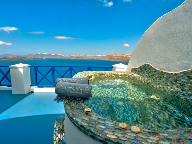 LocationAstarte Suites consists of 15 luxury suites built Cliffside at Akrotiri’s Caldera with direct breathtaking views of the Aegean Sea and the Volcano of Santorini. Located at a privileged location, away from the busy crowds, makes it ideal for secluded and luxury romantic vacation in Santorini.Hotel is 9 Km from the airport, 6 Km from the port and 10 Km from the Capital city of Fira.Hotel is located just a short drive away from the vibrant Red beach, Akrotiri excavations, and the Lighthouse for less crowded sunset views.ArchitectureStylish traditional Cycladic architecture is in perfect harmony with the environment as lava rocks and other earth materials are combined. The interior design is inspired from ancient Mediterranean cultures distinguishing each suite’s different personality and character. Hotel facilitiesRestaurant provides a greek tasting experience while its unique location on the rim of the Caldera of Santorini ensures of stunning views. Infinity pool with jacuzzi having sun loungers, umbrellas and relaxing bean bags. Lunch and refreshing drinks are served during the day. Beach towels provided.En suite massage services in the privacy of your suite from our specialised masseur. A series of revitalizing massage treatments are sure to balance your body and mind.Concierge: arrangement of transfers, flowers and room decoration for special occassions, car rental, boat excursions, private dining, wine tasting, chartering of helicopters and yachts. Please contact us: info@astartesuites.gr Guest Facilities & ServicesTransfer for guests’ arrival and departure with a/c SUVWelcome Champagne and fresh fruit plate upon arrivalComplimentary WiFi24h Front deskBell boy servicesRoom serviceBreakfast is served at guests’ private balcony or terracePrivate balcony or terrace to all roomsTwice daily maid serviceLaundry and pressing servicesManicure-pedicure-coiffure and make up stylist Beach bag with XL beach towelsWeddingsWhat would be more ideally than to be united with your beloved one overlooking the ocean from our extraordinary wedding pavilion? Children PolicyReservations with children above 13 years old can be accepted
