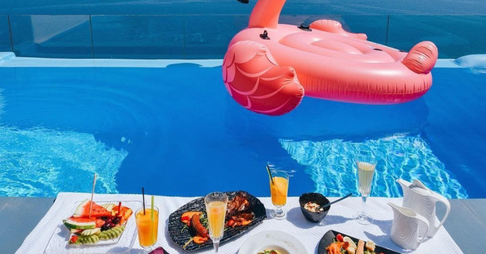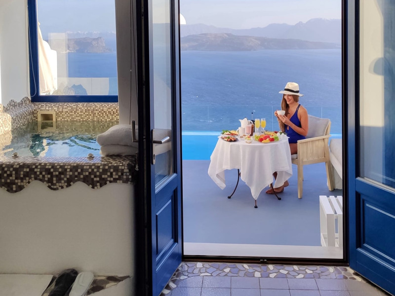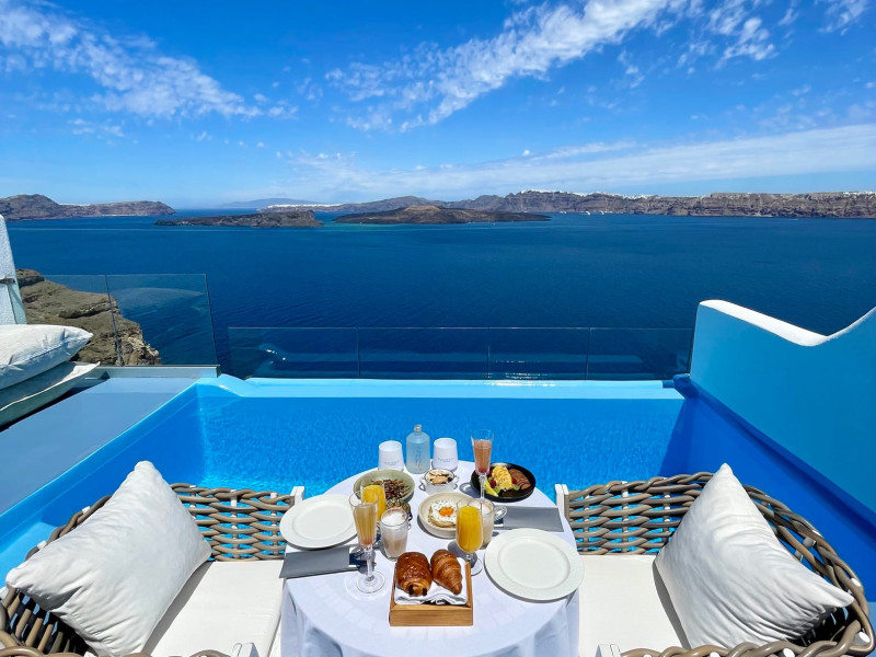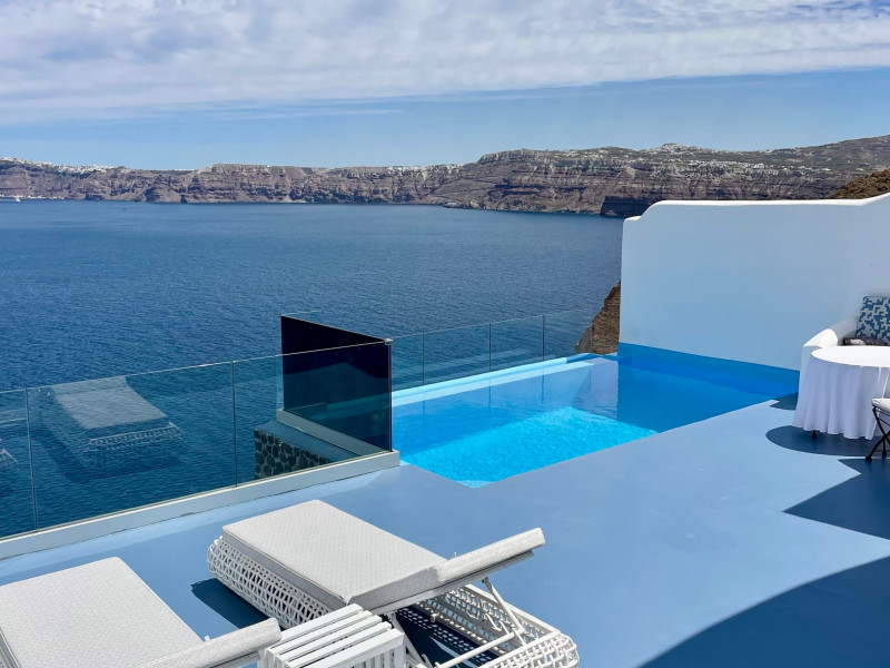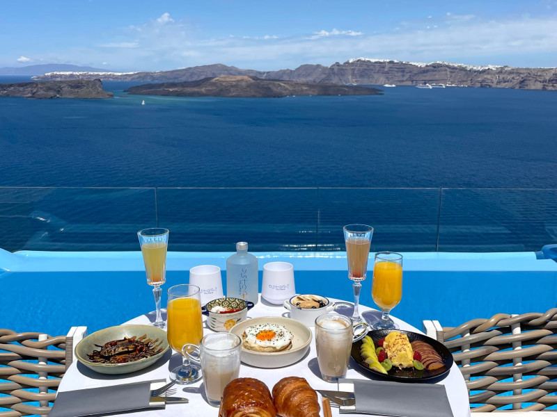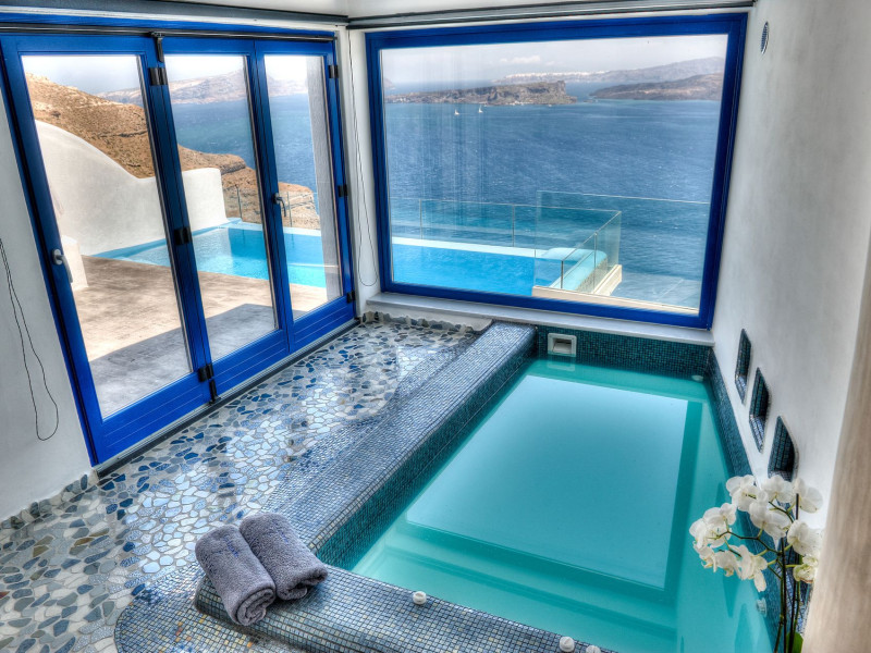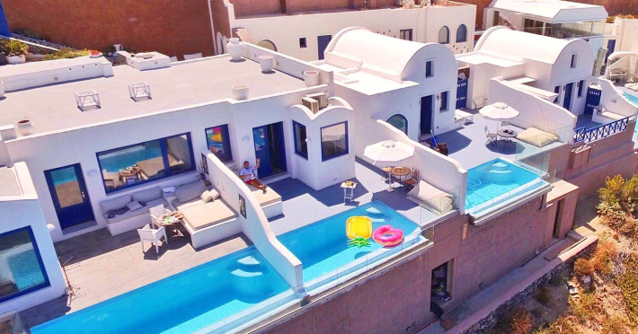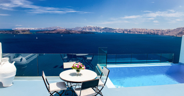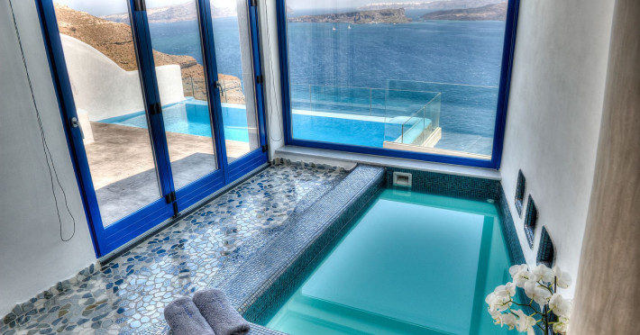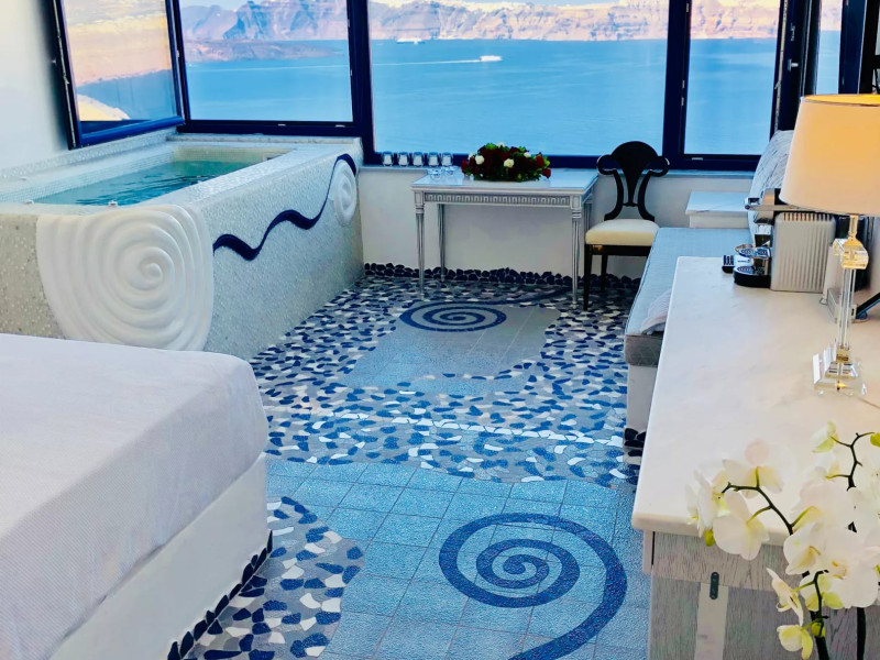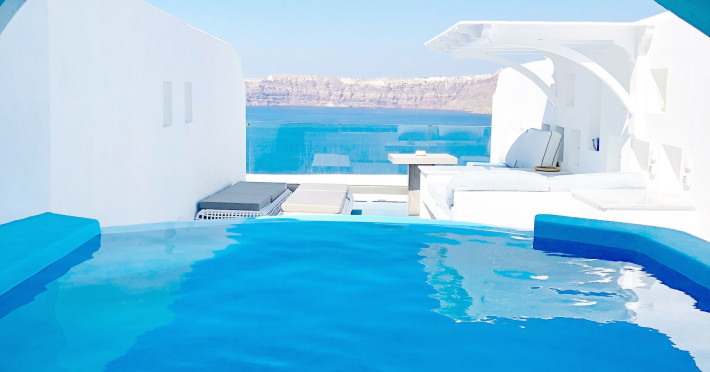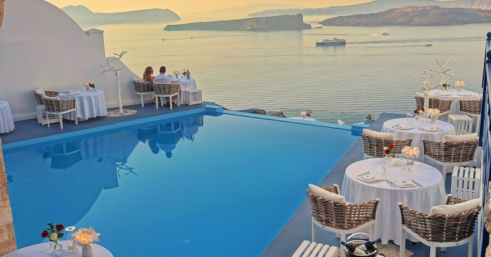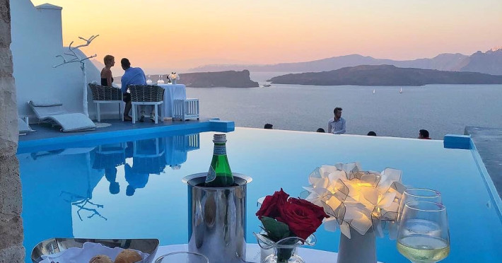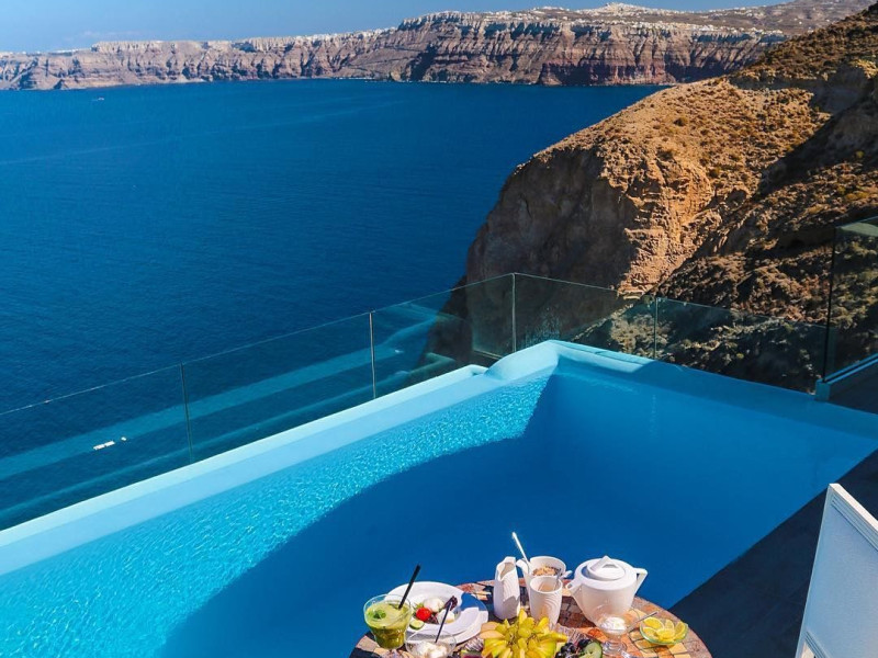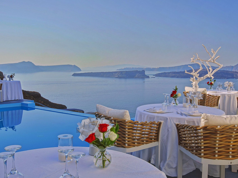 LocationAstarte Suites consists of 15 luxury suites built Cliffside at Akrotiri’s Caldera with direct breathtaking views of the Aegean Sea and the Volcano of Santorini. Located at a privileged location, away from the busy crowds, makes it ideal for secluded and luxury romantic vacation in Santorini.Hotel is 9 Km from the airport, 6 Km from the port and 10 Km from the Capital city of Fira.Hotel is located just a short drive away from the vibrant Red beach, Akrotiri excavations, and the Lighthouse for less crowded sunset views.ArchitectureStylish traditional Cycladic architecture is in perfect harmony with the environment as lava rocks and other earth materials are combined. The interior design is inspired from ancient Mediterranean cultures distinguishing each suite’s different personality and character. Hotel facilitiesRestaurant provides a greek tasting experience while its unique location on the rim of the Caldera of Santorini ensures of stunning views. Infinity pool with jacuzzi having sun loungers, umbrellas and relaxing bean bags. Lunch and refreshing drinks are served during the day. Beach towels provided.En suite massage services in the privacy of your suite from our specialised masseur. A series of revitalizing massage treatments are sure to balance your body and mind.Concierge: arrangement of transfers, flowers and room decoration for special occassions, car rental, boat excursions, private dining, wine tasting, chartering of helicopters and yachts. Please contact us: info@astartesuites.gr Guest Facilities & ServicesTransfer for guests’ arrival and departure with a/c SUVWelcome Champagne and fresh fruit plate upon arrivalComplimentary WiFi24h Front deskBell boy servicesRoom serviceBreakfast is served at guests’ private balcony or terracePrivate balcony or terrace to all roomsTwice daily maid serviceLaundry and pressing servicesManicure-pedicure-coiffure and make up stylist Beach bag with XL beach towelsWeddingsWhat would be more ideally than to be united with your beloved one overlooking the ocean from our extraordinary wedding pavilion? Children PolicyReservations with children above 13 years old can be accepted