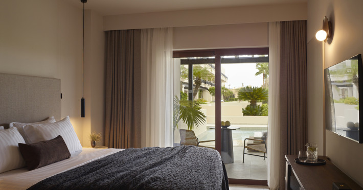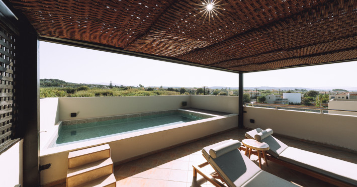 Nestled on a serene sandy beach on the west coast of Crete in Pyrgos Psilonerou, and blessed with incredible views over the sparkling blue Aegean Sea and Saint Theodore Island’s nature reserve, to describe Asterion Suites & Spa as a true piece of paradise on earth is not an exaggeration. Situated only 3km away from the cosmopolitan beach town of Platanias and 35km from Chania’s international airport.