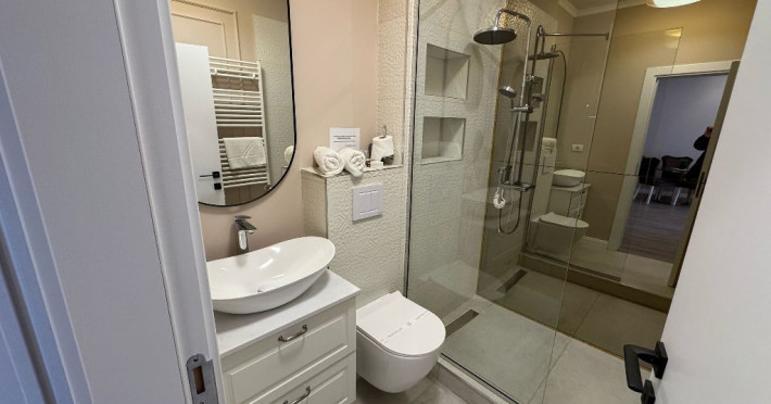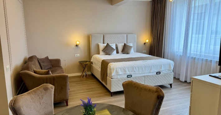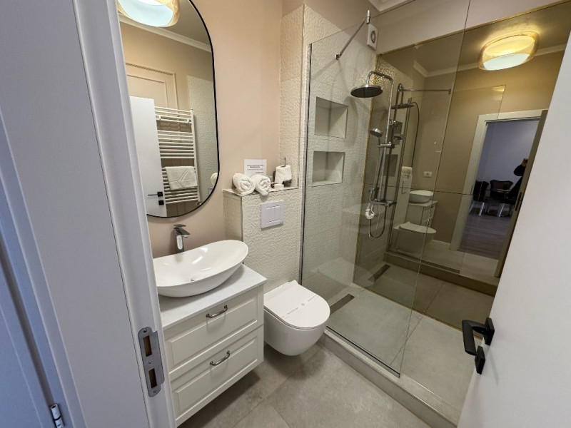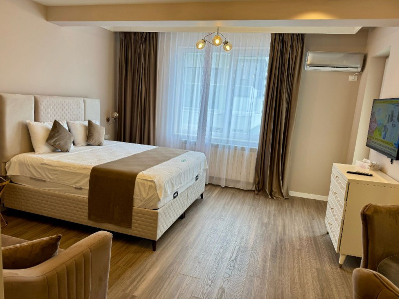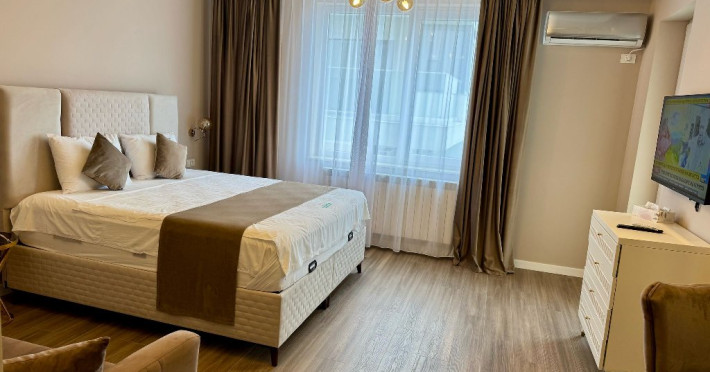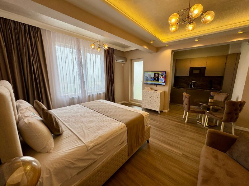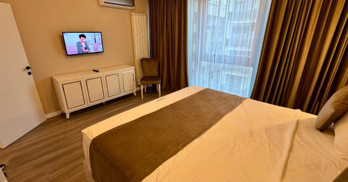 DESCRIERE CAMERE Apartamente Luxoase cu pat matrimonial si canapea extensibila ! Toate apartamentele au balcon! Livingurile sunt spatioase si luminoase, dotate cu mobilier modern, canapelele extensibile si zona de dining creeaza un ambient cald si primitor, iar dormitoarele sunt dotate cu paturi king-size cu saltele premium, lenjerii albe de hotel, dulapuri incapatoare ai perdele blackout pentru liniate deplina. Atmosfera este una intima si relaxanta! Toate spatiile de cazare dispun de LCD tv, aer conditionat, wi fi, baie cu cabina de dus sau cada cu uscator de par si cosmetice hoteliere, bucatarie echipata cu frigider, plita, aparat de cafea, hota si vesela. Studiourile sunt compuse dintr-un open space cu un pat matrimonial si o canapea extensibila, bucatarie echipata, baie cu cabina de dus. Apartamentele sunt compuse din living cu canapea extensibila, dormitor cu pat matrimonial, bucatarie echipata, baie cu cada sau cabina de dus si balcon mobilat (masa si scaune). Camerele sunt separate cu usa, iar aer conditionat exista doar in living, dar TV este in ambele incaperi. LOCALIZARE AVANGARDE SEA Luxury Apartment se afla in Mamaia Nord - Navodari, la cativa pasi de Plaja Mamaia, la 6,5 km de Lacul Siutghiol si la 13 km de City Park Mall Cora Hypermarket.