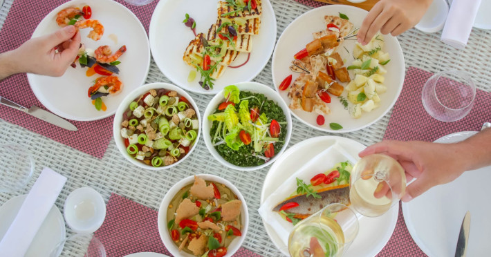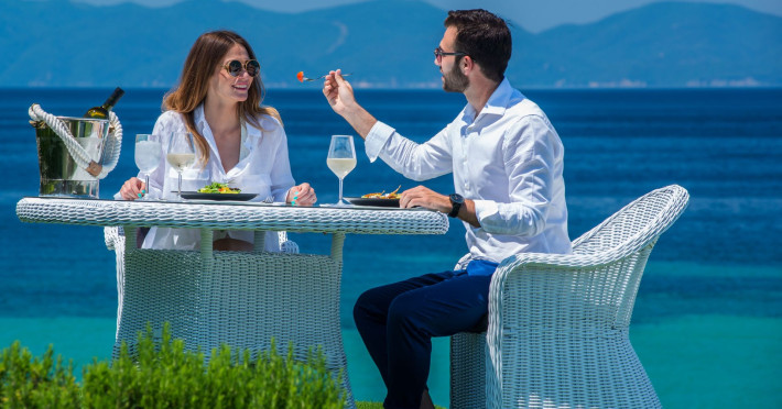 Get served in our Restaurant area on the serenity of a green hill in front of a magnificent beach, overlooking the crystal Aegean waters or in the privacy of your villa.