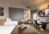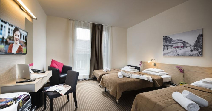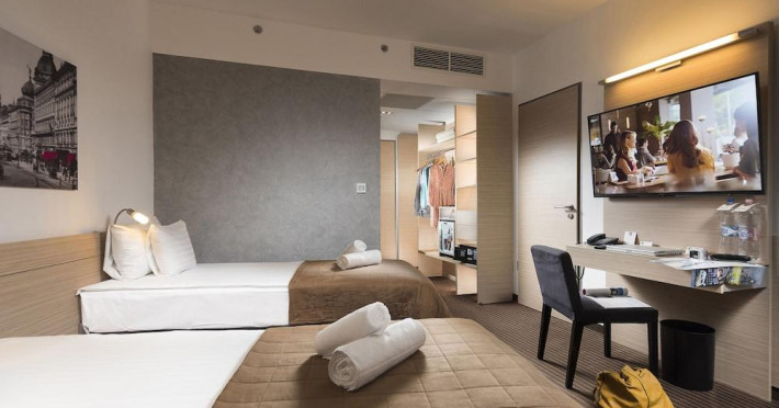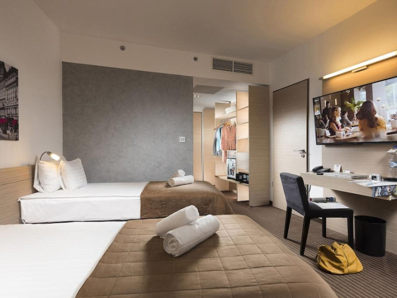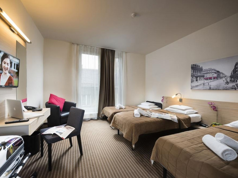 This hotel is located in District 8 of Budapest, in the immediate vicinity of Corvin Shopping Centre and the Corvin promenade, near the bustling city centre. The hotel is easily accessible both by public transport and car. Among the high-level services and facilities offered, which guarantee a pleasant stay in Budapest, the hotel offers rich champagne buffet breakfast and a wide variety of hot and cold meals. At weekends, a chocolate fountain is also offered. The wellness corner of the hotel has Finnish and infra saunas and fitness corner, which can be used free of charge, apart from a Solarium. Parking places are also available upon request. Guests can also benefit from the facilities of the express laundry service and room service available in the morning hours. The stylish and friendly rooms are air-conditioned and equipped with LCD TV, lap-top-size safe, minibar, and a bathroom with bath or shower. Free Wi-Fi Internet is available throughout the hotel.