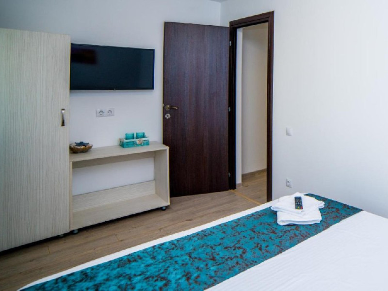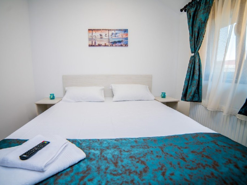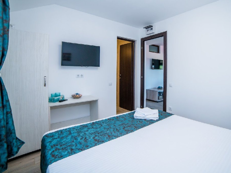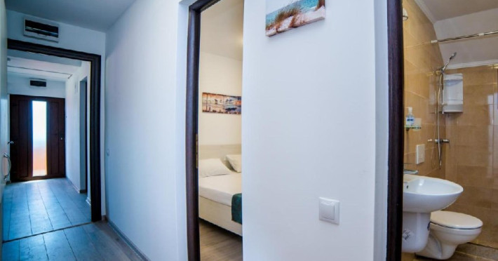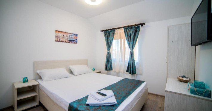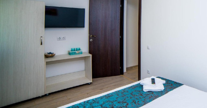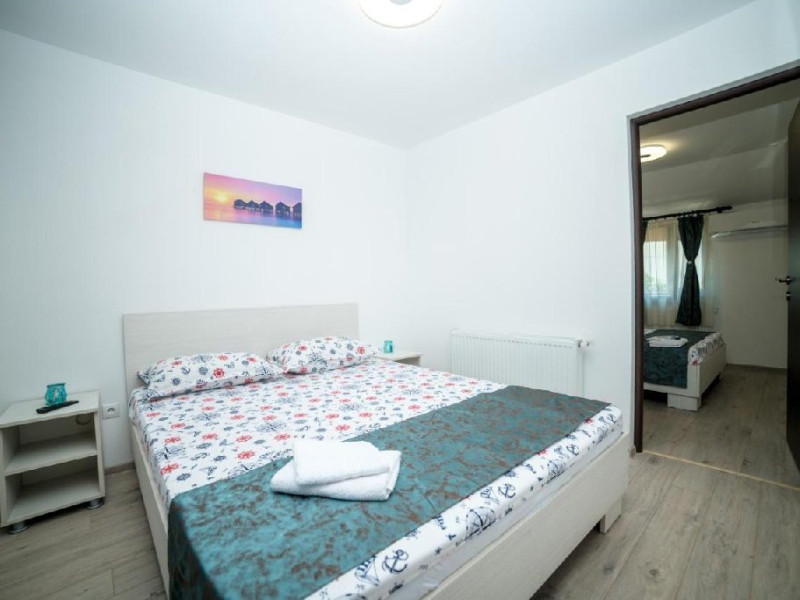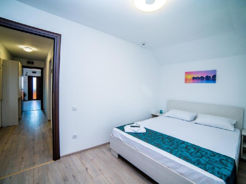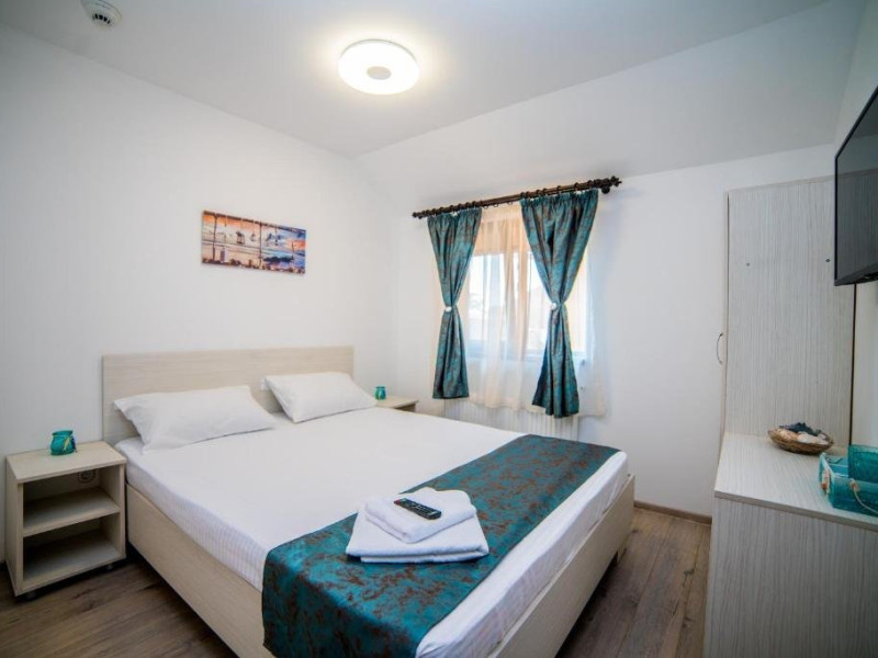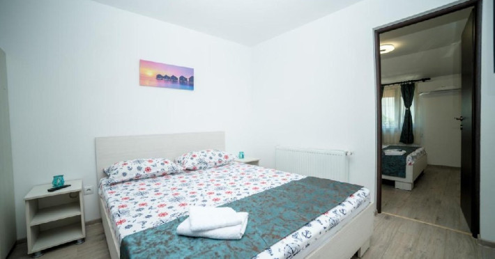 DESCRIERE CAMERE Dotari camere: fiecare camera dispune de pat matrimonial 160/200, aer conditionat, TV LED, baie privata si mobilier modern. Apartamentul are suprafata de aproximativ 35 mp, este compus din 2 dormitoare cu 1 baie comuna, are in dotare 1 aparat AC si 1 minibar.