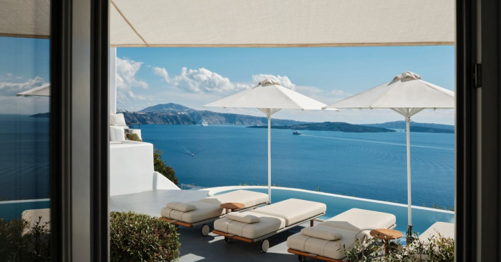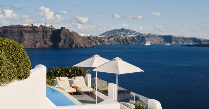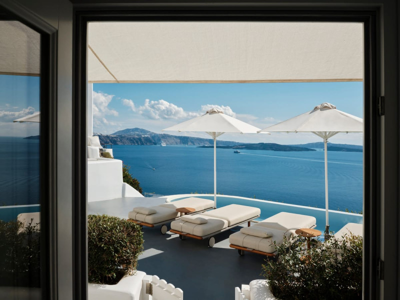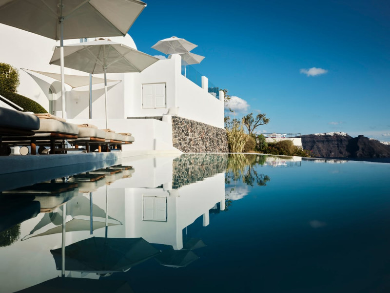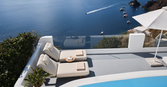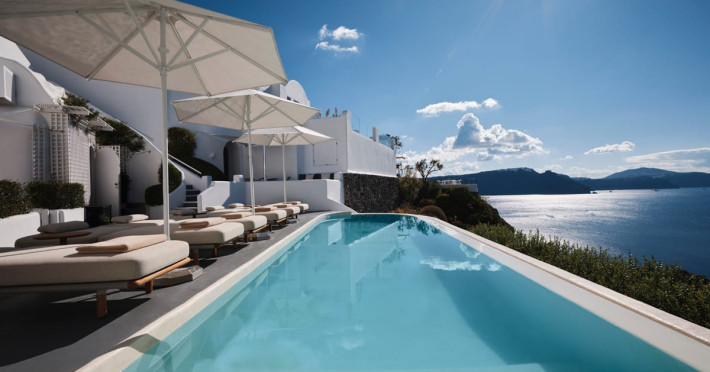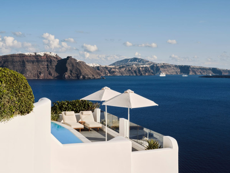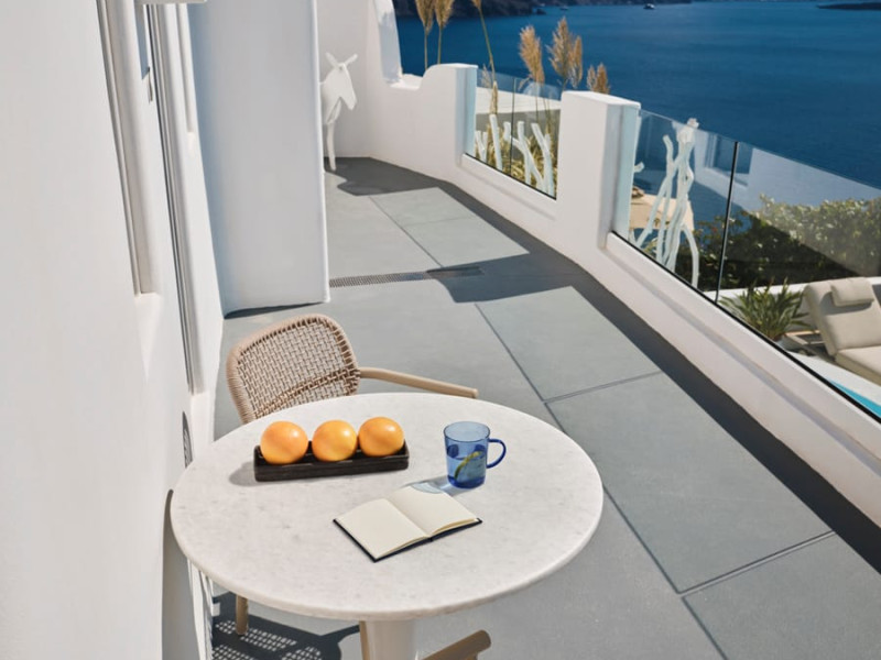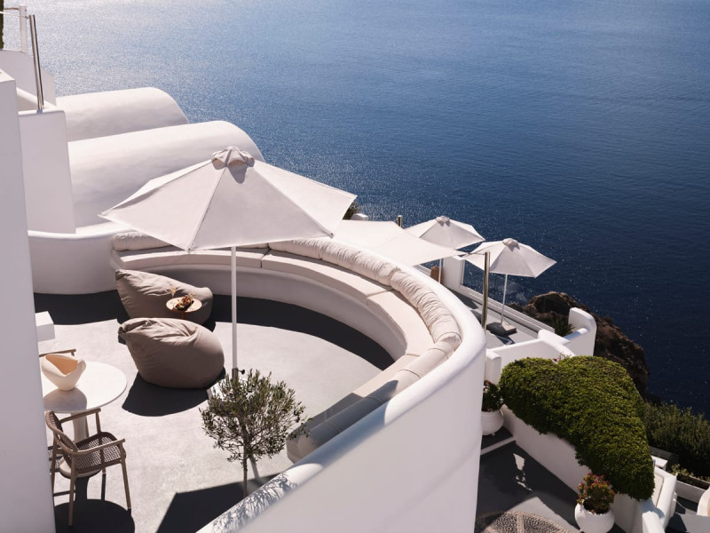 Canaves Sunday, is a complex of 8 luxurious (cave) Suites 45 - 85 sq, hanging majestically on the side of the Caldera.Filled with the luminous Greek light they are created to provide you with the best views of the Caldera, Volcano and the infamous Oia Sunset.Each suite is absolutely unique as the entirety of all the furnishings and other objects are custom made, with individual art pieces.The only thing that the Suites have in common is high artistic quality and handwork.All Suites have their own patio and a view of the Caldera.Canaves Sunday is ideally located at the center of the traditional town of Oia with easy access from the main street.Plot 903,17 sq m spreading in 4 levels (all facing the Caldera)