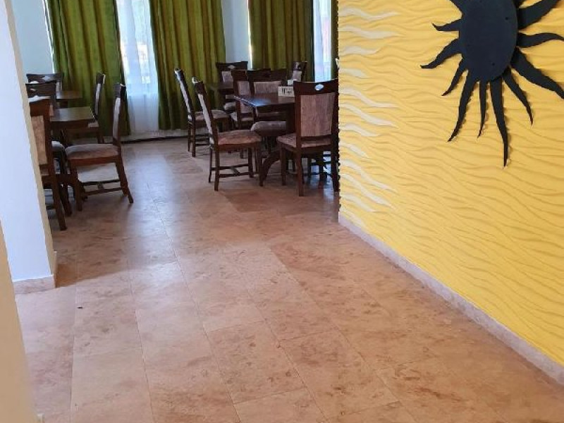 INFORMATII GENERALE Casa Helios este situata in centrul Sulinei, la 1 minut de mers pe jos de faleza pietonala, restaurante si in proximitatea mijloacelor de transport catre plaja. DESCRIERE UNITATE DE CAZARE Locatia dispune de cazare moderna si un restaurant in care se servesc doar preparate gatite lent, traditional, dupa retete autentice cu peste proaspat din Delta Dunarii. FACILITATI UNITATE Pe langa capacitatea de cazare, locatia ofera un restaurant in interior si o terasa exterioara, in imediata vecinatate a locului de joaca pentru copii. DESCRIERE CAMERE Camera dubla are 18 mp si dispune de un pat matrimonial. Camera twin are 16 mp si dispune de 2 paturi separate. Camera tripla are 20 mp si dispune de un pat matrimonial si un fotoliu extensibil. Fiecare camera este dotata cu aer conditionat, TV ecran plan, baie proprie, uscator pentru par, prosoape, consumabile. Camerele nu au balcon individual. In schimb, atat la etajul 1 cat si la etajul 2, exista cate un balcon comun. LOCALIZARE Casa Helios este situata in centrul Sulinei, la 1 minut de mers pe jos de faleza pietonala, restaurante si in proximitatea mijloacelor de transport catre plaja. Accesul la locatie se face exclusiv cu barca. ATRACTII TURISTICE Plaja Sulina, Farul Observator, Catedrala Sf. Alexandru si Sf. Nicolae, Expozitia Sulina Veche, excursii satul Letea. POLITICI Nu sunt permise animalele de companie. SERVICII DE MASA Turistii pot servi micul dejun si cina in restaurantul propriu. FACILITATI COPII Loc de joaca interior.