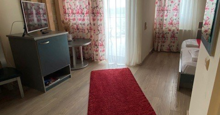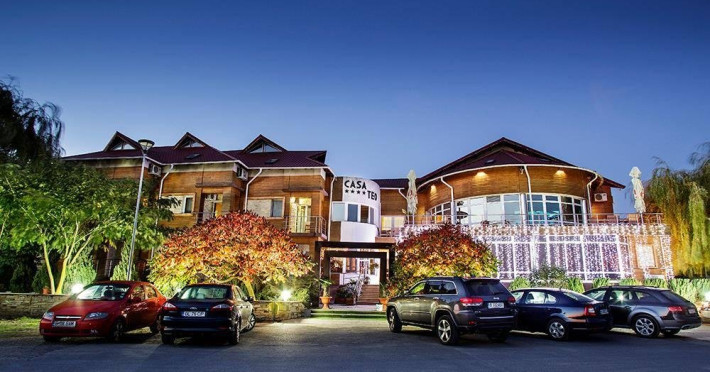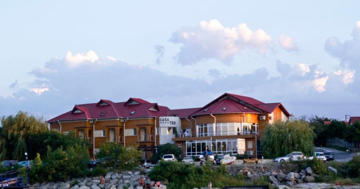 INFORMATII GENERALE Casa Teo, situata in Delta Dunarii pe malul drept al bratului Sf. Gheorghe, la numai 29 km de municipiul Tulcea in localitatea Mahmudia. Drumul judetean DJ222C va duce pana in parcarea pensiunii Casa Teo. DESCRIERE UNITATE DE CAZARE Locatia este una moderna cu vedere spre Dunare, ideala pentru iubitorii de natura. FACILITATI UNITATE Casa Teo, situata in Delta Dunarii pe malul drept al bratului Sf. Gheorghe, la numai 29 km de municipiul Tulcea in Mahmudia va sta la dispozitie cu 23 de spatii de cazare dotate cu bai moderne, aer conditionat, TV cu receptie prin satelit, acces free wireless la Internet, minibar, toate acestea intr-un spatiu stralucind de curatenie. Tot la Casa Teo gasiti si un restaurant cu 50 de locuri unde se pot servi atat traditionalele bucate pescaresti cat si preparate traditionale romanesti. In timp ce serviti masa cu bunatati pe care natura le ofera in aceasta zona, va puteti delecta privind catre batranul fluviu ce curge molcom catre Marea Neagra, serviciile fiind asigurate de o echipa profesionista. Casa Teo are in dotare o sala de conferinte cu o capacitate de 35 de locuri care este pusa la dispozitie fara costuri suplimentare. Casa Teo are si o mica flota de agreement, compusa din barci cu o capacitate de 12 persoane, 6 persoane, 4 persoane, toate conduse de personal calificat ce asteapta sa va prezinte mirifica Delta a Dunarii. In cadrul sejurului petrecut la Casa Teo se poate organiza o cina cu foc de tabara, un picnic cu bors pescaresc intr-un cadru natural, partide de pescuit si vanatoare precum si excursiila punctele de atractie ale Rezervatiei Biosferei Delta Dunarii, vizitarea obiectivelor turistice,(rezervatii naturale, vestigii istorice, lacase de cult). DESCRIERE CAMERE Casa Teo dispune de 23 de spatii de cazare: 19 camere duble si 4 apartamente. Camerele duble pot fi confirmate si in regim single. O parte din camere au balcon. Dotari: aer conditionat, TV, minibar, baie cu dus, balcon ( o parte din camere), acces gratuit Wi-fi, uscator de par. Tipuri de camera: - 5 Camere duble standard fara balcon cu vedere in spate, in care se poate pune un pat suplimentar GONFLABIL - 4 Camere duble Deluxe fara balcon cu vedere in spate, in care se poate pune un pat suplimentar GONFLABIL - 6 Camere Velux fara balcon, situate la mansarda in care se poate pune un pat suplimentar GONFLABIL - 3 Camere duble Deluxe cu balcon si cu vedere la Dunare in care se poate pune un pat suplimentar GONFLABIL - 1 Apartament standard cu balcon si cu vedere laterala la Dunare, are 2 camere, cu un pat matrimonial si un pat pentru o persoana. - 1 Suite Velux fara balcon situat la manasarda are 1 pat matrimonial si canapea extensibila - 3 Suite Deluxe cu balcon si vedere la Dunare au 1 pat matrimonial si canapea extensibila LOCALIZARE Casa Teo este situata pe malul drept al bratului Sf. Gheorghe, la numai 29 km de municipiul Tulcea in localitatea Mahmudia. Drumul judetean DJ 222C va duce pana in parcarea pensiunii Casa Teo. ATRACTII TURISTICE Plimbari in Rezervatia biosferei Delta Dunarii, coloniile de pelicani, lebede, cormorani, covoarele de nuferi albi si galbeni, partide de pescuit, Cetatea Argamum (Orgame) - aflata la Jurilovca; Cetatea Halmyris in comuna Murighiol, Cetatea Histria pe malul lacului Sinoe, Cetatea romano-bizantina Dinogetia in comuna Jijila; Geamia Ali-Gaza-Pasa situat in orasul Babadag; Cetatea romana Noviodunum langa orasul Isaccea; Cetatea romana Arrubium in orasul Macin Cetatea romana Beroe in comuna Ostrov, Cetatea romana de la Enisala, Manastirea Cocosu, Manastirea Celic-Dere, Manastirea Saon, Muzeul Farul Vechi (genovez) Sulina. SERVICII DE MASA Se acorda in restaurantul propriu, capacitate 50 locuri, in regim a-la-carte. FACILITATI COPII Loc de joaca FACILITATI EVENIMENTE Sala de conferinte, 35 locuri, dispune de lumina naturala. Dotari: internet wi-fi, flipchart, consumabile, tv si video, ecran de proiectie, videoproiector, instalatie sonorizare, spatiu amenajat pentru coffee-break; DJ la cerere.