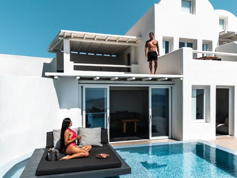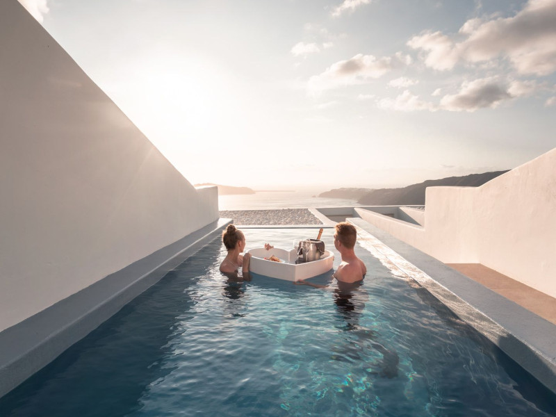 CAVOTAGOO DRAWS YOU UNDER ITS SPELL…Welcome into a world of bespoke luxury and sublime romance! Where Greek hospitality meets raw luxury & intriguing elegance. Where dreams are about to be brought to life. Where sophisticated simplicity is carefully blended with iconic seascapes and mouth-dropping views. At Cavotagoo every visitor is treated as King & Queen.Cavotagoo is an exclusive “luxury living” hotel in Imerovigli, perched above the world-famous Caldera with breathtaking views and life-defining sunsets. Benefitting by its location and true to its brand name, Cavotagoo Suites balance elegant sophistication and raw natural beauty, of local ingenious architecture. A top-notch cluster of elegant suites scattered on a steep rocky slope of the island’s famous Caldera. Luxury accommodation in Santorini has never been better situated – the ideal hotel in Santorini for your holiday or your honeymoon. A true masterpiece of refined tradition, a supreme all-suite sanctuary for the senses, inviting you to share a heavenly, once-in-a-lifetime experience while marveling at the world’s most fascinating sunsets.Surrender to the miraculous hues of the sunset against the dramatic backdrop of the spell-binding caldera and the scintillating azure of the Aegean Sea as you savor exceptional dishes from the Mediterranean Fusion cuisine and the Mediterranean gastronomy at one of the finest Imerovigli Santorini Restaurants. Experience a once in a lifetime journey of flavors and aromas in an environment oozing romance and let the day pass you by with signature cocktails from our mixologist at a top Santorini Lounge bar with caldera view. If you wish to further enjoy the pleasures of intimacy let us arrange for you a private candle light dinner on your own private balcony to enjoy with your other half.Let us spoil you!