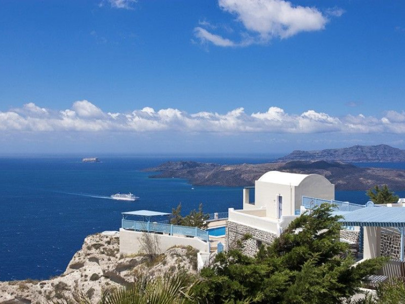 Celestia Grand is Santorini's most exclusive luxury accommodations perched high on the caldera cliffs overlooking the sea and volcano. The villas are crafted in traditional Cycladic architectural style and offer the warmth of Greek Island charm and the convenience of modern amenities. Each villa is like your own little house on the cliff with its own private pool and spacious cliff-side yard overlooking the sea and Santorini’s unique Caldera view.These 5 star accommodations offer a high level of service and many amenities and are perfect for travelers seeking peace, privacy and concierge service.The villas operate with the standard premium package in the summer period and as self-catering accomodations at reduced rates and services in the off-season (Winter Period: October 20 through April 30)If you plan on leaving gratuites for staff, this may be done at time of departure to the front desk in cash or credit. If you would like to honor specific teammembers, you may single them out to the manager at that time, otherwise gratuities are split evenly to all staffmembers. Common gratuity amount is 5% of the entire booking value.IMPORTANT NOTICE: Please note that during the off-season (between October 15th and April 15th), due to low outside ambient temperatures and potentially strong winds, the outdoor pools and hot tubs may not reach desired temperatures. Between April 15 and October 15th Pool temperatures are set to 27 Celsius and Hot Tubs are set to 37 Celsius. Weather anomalies in the summer period may also negatively affect these set temperatures.