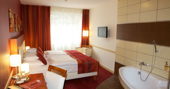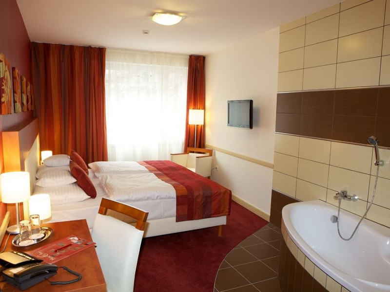 This city hotel is located in the heart of Budapest, just minutes from the city centre. There are two metro stops within a short walk of the establishment and numerous shopping, entertainment and sports facilities can be easily reached by means of public transport. The Museum of Applied Arts, St. Stephen Basilica, the National Museum and Fuveszkert Botanic Garden are all situated in the surrounding area. Budapest Airport is at 18 km away. Intimate colours and comfortable furniture provide a warm and cosy atmosphere in the guestrooms, which all come with individually adjustable air-conditioning and heating and satellite TV. After returning from a long day, guests can relax and pamper themselves at the wellness section, located on the top floor of the hotel.