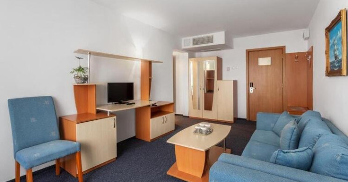 Dotari camere: aer conditionat, TV, minibar, baie cu dus la camere, baie cu cada in apartamente, balcon, uscator de par, telefon, seif.
