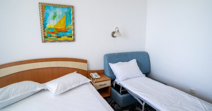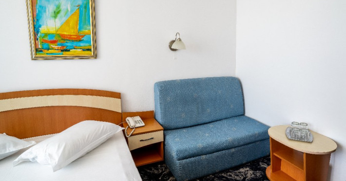 In camera dubla cu vedere frontala la mare se poate introduce un singur pat suplimentar.