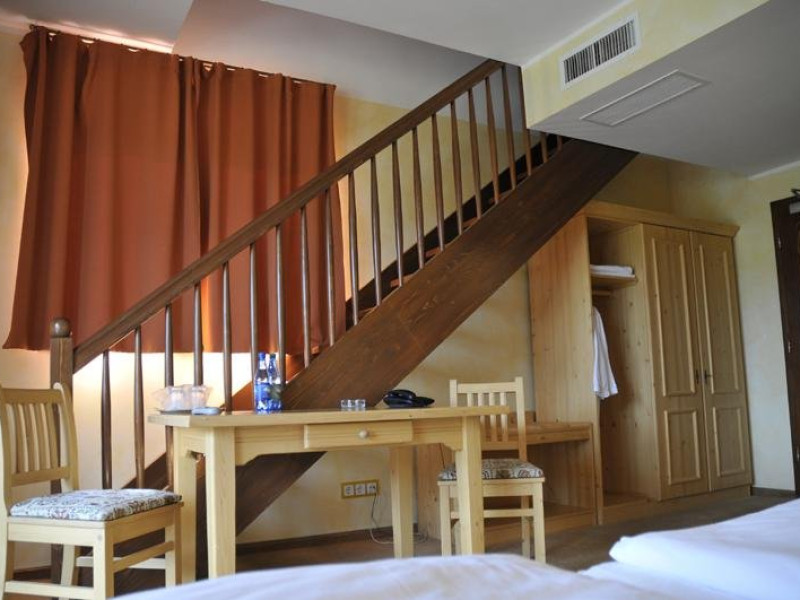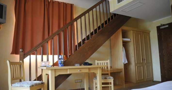 DESCRIERE CAMERE: Complex Albota dispunde de 40 camere cu 103 paturi. Campingul contine 9 casute de vacanta cu baie proprie, tv, Wi-Fi, climatizare, parcare proprie, acces piscina in sezon. Camerele duble sunt dotate cu pat matrimonial sau twin, terasa, tv, birou de lucru, internet Wi-Fi, baie cu cabina de dus. Camerele triple sunt dotate cu pat matrimonial si canapea extensibila, terasa, tv, birou de lucru, internet Wi-Fi, baie cu cabina de dus. Junior suite sunt spatii de cazare dispuse pe doua nivele, la parter avem pat matrimonial, tv, acces terasa, masuta si scaune, baie cu cabina de dus, la etaj se ajunge pe o scara interioara si se afla un dormitor cu doua paturi. Camere corp B si C: aceste camere sunt situate in Vile situate la cativa zeci de metri de corpul principal de cladire. Sunt dotate cu pat matrimonial sau twin, tv, birou de lucru, internet Wi-Fi, baie cu cabina de dus.