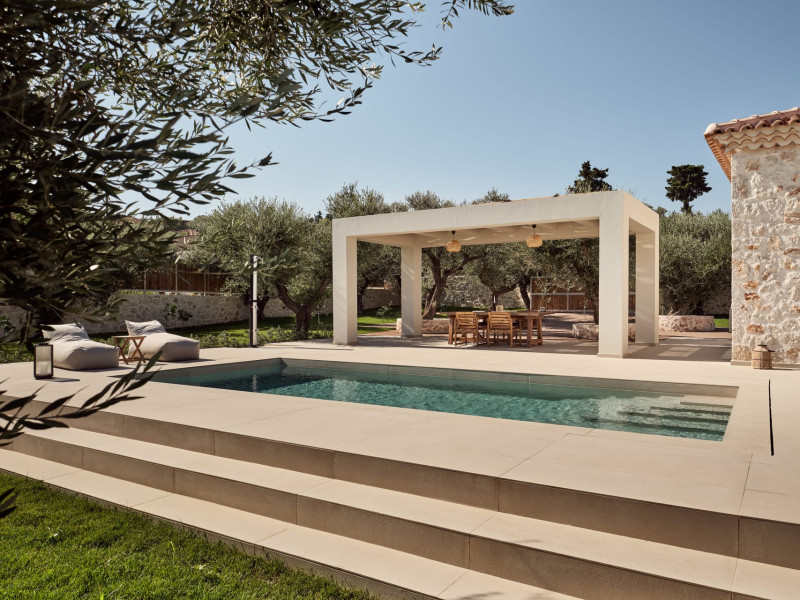 Tucked away among centuries-old olive trees, the open-plan stone villas offer the perfect balance of modern comfort, traditional craftsmanship, and Mediterranean nature. Built with natural stone and wood, the villa reflects the timeless architecture of Zakynthos while featuring all the amenities of a modern retreat. Inside, you’ll find a spacious open-plan layout where the bedroom, living space, and fully equipped kitchen flow together seamlessly — creating a cozy yet elegant atmosphere. Step outside to your private oasis: a large swimming pool surrounded by olive groves, lush gardens, and sun-drenched terraces. Whether you’re enjoying your morning coffee under the shade of the trees, or stargazing by the pool at night, the setting invites peace and connection with nature.Designed with meticulous detail, the villa combines traditional stonework and handcrafted touches with contemporary design, offering both authenticity and comfort. This is more than a place to stay — it’s a chance to immerse yourself in the Mediterranean way of life: slow mornings, sunlit afternoons, and serene evenings under the olive trees.