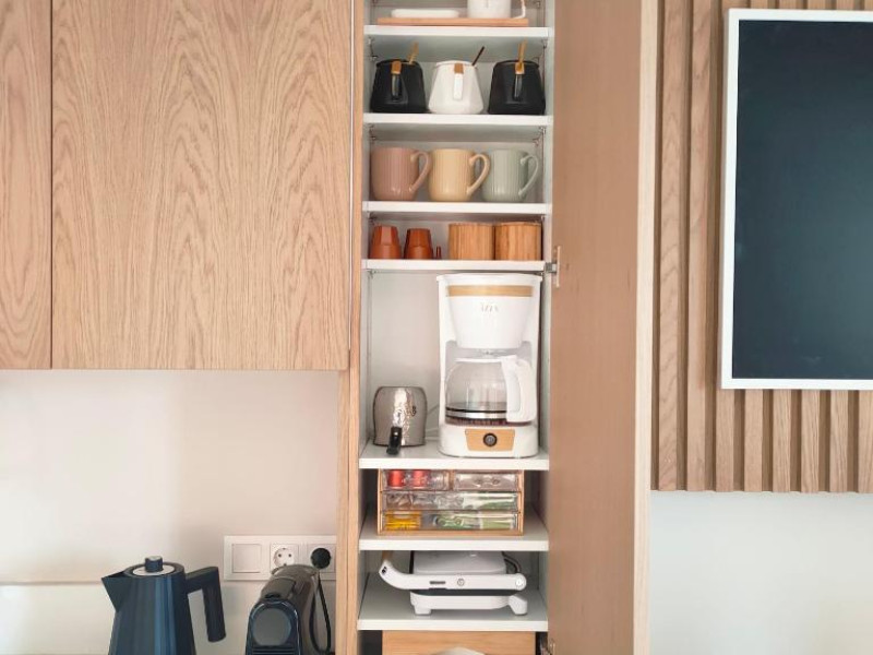 Each suite features a fully equipped kitchen with modern appliances, stylish décor, a spacious living area, a private balcony, comfortable beds, and free Wi-Fi. The design ensures comfort, relaxation, and a touch of luxury throughout your stay.