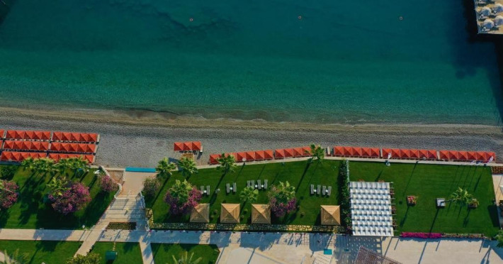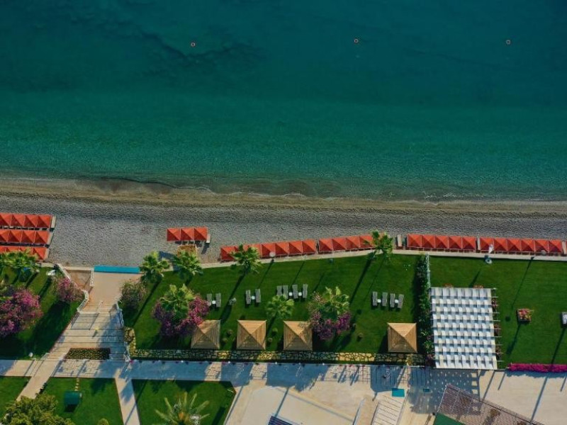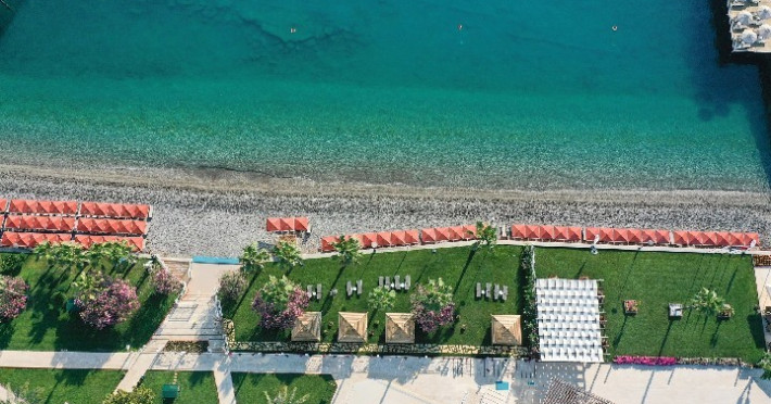 plaja cu pietris chiar langa hotel, extinsa cu un debarcader
