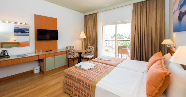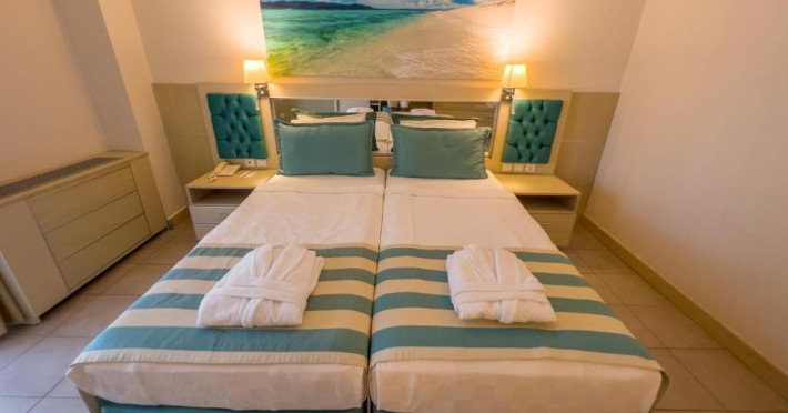 Camera dubla, Club: baie/WC (uscator de par), aer conditionat, TV/sat., telefon cu linie directa, minibar (reaprovizionat zilnic cu apa, bauturi racoritoare si bere), seif, facilitati pentru prepararea de cafea si ceai, aprox. 22 m2, situate in cladiri din gradina.