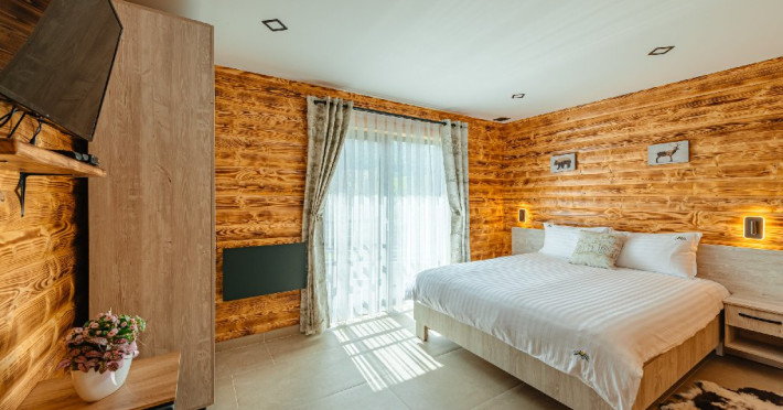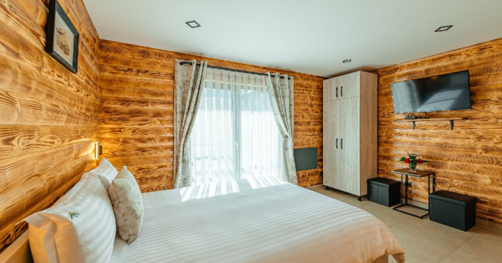 DESCRIERE CAMERE: Toate camerele, livingurile precum si centrul spa, sunt dotate cu televizoare cu canale prin satelit, iar Wi-Fi-ul este disponibil in intreg resortul. Parcarea mare, cu capacitate pentru 10 masini, este gratuita. Accesul la toate facilitatile resortului este nelimitat si gratuit. Nu exista costuri suplimentare.