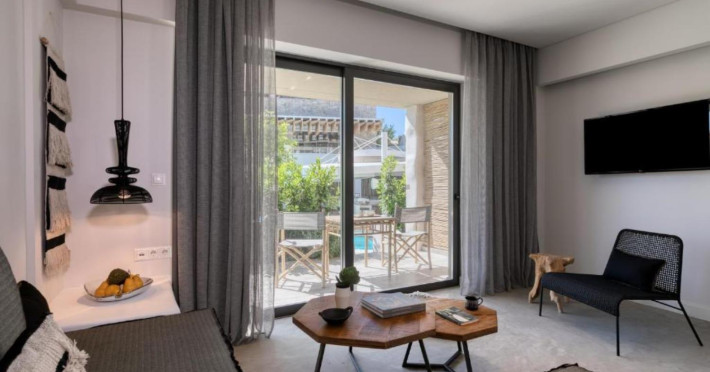 of light-filled suites have beautiful views to the serene Ionian Sea or feature meticulously looked