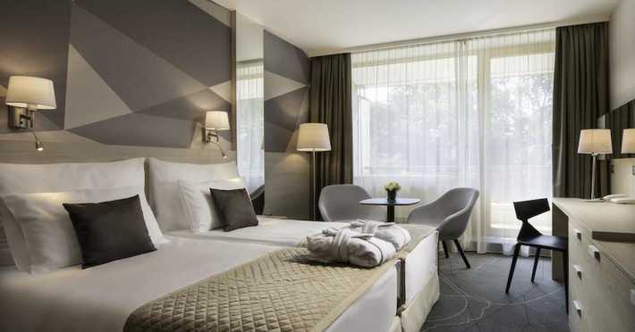 Uniquely situated on the quiet and green Margaret Island in the heart of Budapest, the modern Danubius Health Spa Resort Margitsziget offers free use of its large spa area, an indoor and an outdoor pool, and free WiFi access. The spa area also includes a fitness centre, and various beauty treatments and massages are offered. Guests of the Danubius Resort can enjoy free coffee and a croissant in the morning. In the Platn restaurant with its terrace, you can enjoy gourmet and light cuisine together with magnificent views of the park. The Caf Kamilla with a terrace, the lobby bar and the Neptun bar at the swimming pool are inviting places to relax. All rooms are air-conditioned and have a balcony. A work desk, satellite TV and bathrobes are also provided.