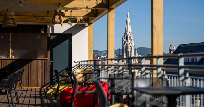 Hotel description : Information about renovation works april/may 2023 Between 11-26 April 2023 the hotels lobby is undergoing renovation works. During this period lobby (including game zone and periodically the laundry) will be closed down. Entrance of the hotel and the Reception will be moved to the hotels Crazy Dean restaurant, located in the courtyard area of Deans College Hotel. Breakfast will be available in Study 2 function room. Between 17-30 April and 15-30 May 2023 construction works will be carried out on the Rooftop terrace. During these periods the Rooftop terrace will be closed. Noisy works will be carried out during daytime only from 10am to 4pm Deans College Hotel is inspired by the location, unexpected details, urban influence, all that comes with the vicinity of Budapest downtown. Perfect for urban explorers who are looking for a new, modern apartment to stay. Have a crazy good breakfast at Crazy Dean and enjoy the astonishing view over the city from the 400 sqm rooftop terrace during the Budapest sunset. The hotel is situated in a university district, in 200 meter walking distance from the Semmelweis Klinikak station of metro line 3 (blue line). The historical city center of Budapest - full of famous historical landmarks, museums, restaurants, bar, pubs, ruin pubs - is just 10 mins by underground. Corvin Plaza shopping center with great restaurants, local bars and terraces is located in 10 minutes walking. facility / Ambiance: comfortable, sustainable, family friendly, modern, suitable for children target audience: group travellers, honeymooners, backpackers, low budget travellers, business travellers, city trip travellers, couples, motorcycle travellers, roundtrip travellers, shorttrip travellers, singles, young travellers, mountainbiker / bicycle travellers, cultural travellers, families, food lovers, homosexual, long term tourists, singles with kids