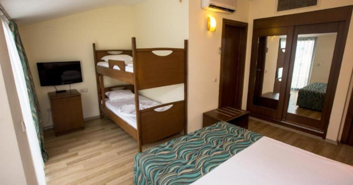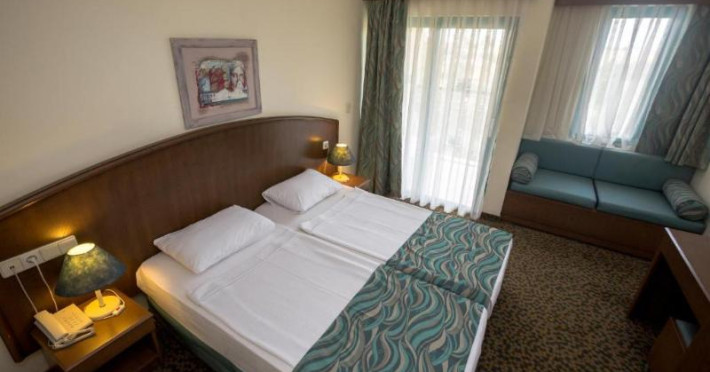 Guests have a choice of 52 apartments and 148 double rooms located in two 4-storey buildings with lifts. Staffed 24 hours a day, the reception desk makes check-in and check-out easy. Amenities available at the hotel include a baggage storage service, a safe and a currency exchange service. Wireless internet access allows guests to stay connected while on holiday. The tour desk offers assistance with booking excursions. Wheelchair-accessible facilities are available. There are a number of shops, including a supermarket. The grounds of the hotel feature a playground and a lovely garden. Additional amenities include a TV room and a playroom. Guests arriving by car can park their vehicles in the garage (no extra charge) or in the car park. Further services and facilities include a childcare service, medical assistance, a transfer service, room service, a laundry service, a hairdresser and a hotel shuttle bus. A bicycle hire service (for a fee) gives guests the opportunity to explore the surrounding area independently.