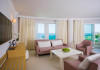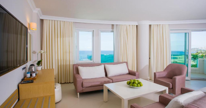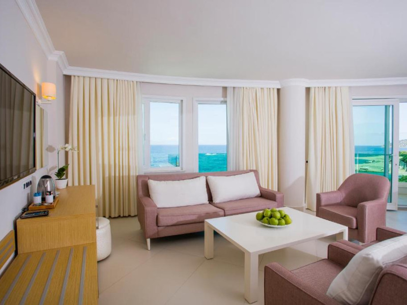 In camere există un aparat de aer condiționat și un sistem de incălzire. In majoritatea spațiilor de cazare clienții beneficiază de vedere spre mare de pe balcon sau de pe terasă. Camerele au un pat dublu. Pot fi solicitate paturi suplimentare. De asemenea, sunt disponibile un seif, un minibar și un birou. Clienții au parte de mai mult confort și datorită setului de călcat. In plus, există un telefon, un televizor cu ecran plat cu canale prin satelit și WiFi (gratuit). In cameră se găsesc și papuci de casă. Băile sunt dotate cu un duș, o cadă și o cadă cu hidromasaj. Un uscător de păr și halate de baie sunt disponibile pentru folosința zilnică. Articolele de cosmetică creează un confort deosebit in băi. Mai stau la dispoziție și camere adaptate pentru scaun cu rotile, cu baie fără bariere.