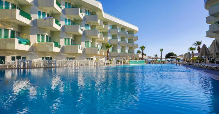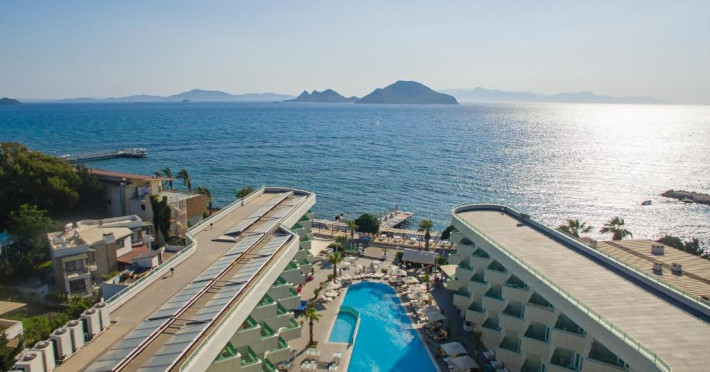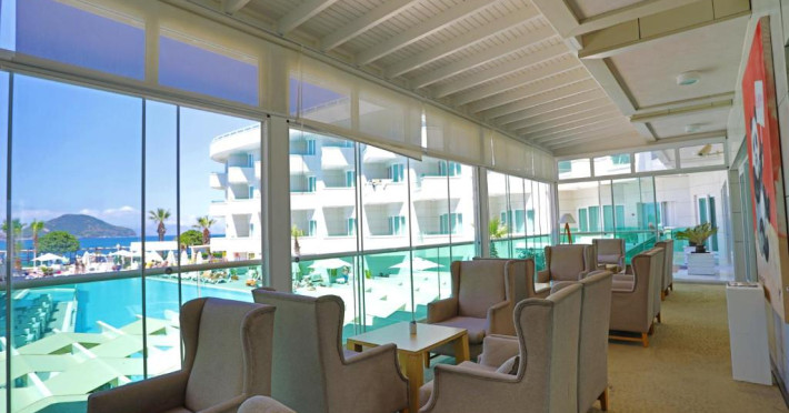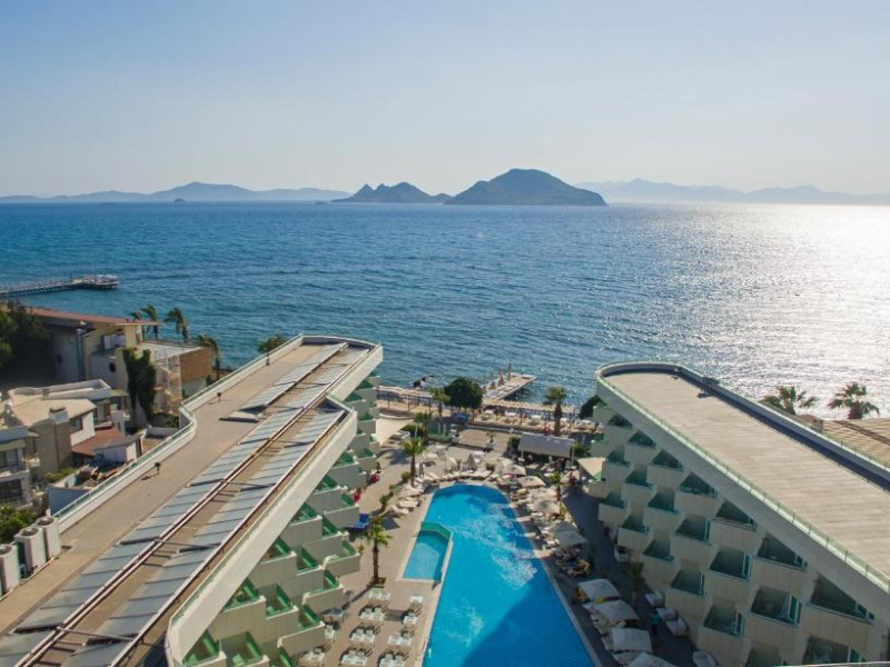 Acest hotel se află chiar pe plajă, intr-o zonă centrală in Turgutreis.