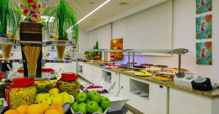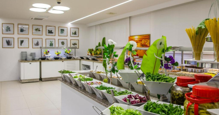 Zona cu restaurante dispune de un restaurant și de un bar. La centrul de cazare se oferă spre rezervare regim all inclusive. Se oferă micul dejun, pranzul și cina. De asemenea, hotelul pune la dispoziție gustări. Unitatea de cazare oferă un sortiment de băuturi alcoolice și nealcoolice.