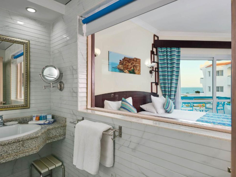 Complexul de piscine cu 3 piscine exterioare și 2 bazine cu apă de mică adancime pentru copii se potrivește perfect pentru odihnă activă și antrenament acvatic regulat. Senzații tari pe toboganul de apă, băuturi răcoritoare la barul piscinei și relaxare agreabilă a mușchilor in cada cu hidromasaj – piscina oferă ceva potrivit pentru orice dispoziție și energie. Șezlongurile confortabile și umbrelele răcoritoare așteaptă pe terasa insorită. Locul de cazare oferă posibilitatea de a face sport in aer liber prin sporturi ca tenis, boccia, volei de plajă, volei și minigolf. Datorită unor sporturi ca snorkelling și scufundări subacvatice, resortul ii atrage și pe cei ce practică sporturi acvatice. In plus clienții pot alege intre o sală de fitness, tenis de masă și biliard. In complexul de vacanță sunt propuse diverse oferte de relaxare, ca de exemplu spa, saună, hamam și terapii prin masaj. Programul de divertisment cuprinde un program de recreere și un miniclub. Copyright GIATA 2004 - 2023. Multilingual, powered by www.giata.com for client no. 128259