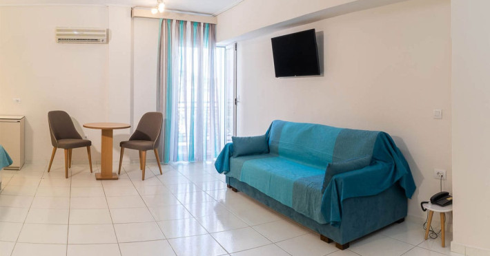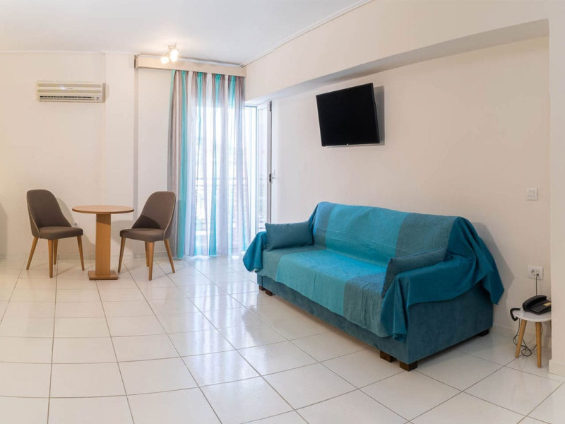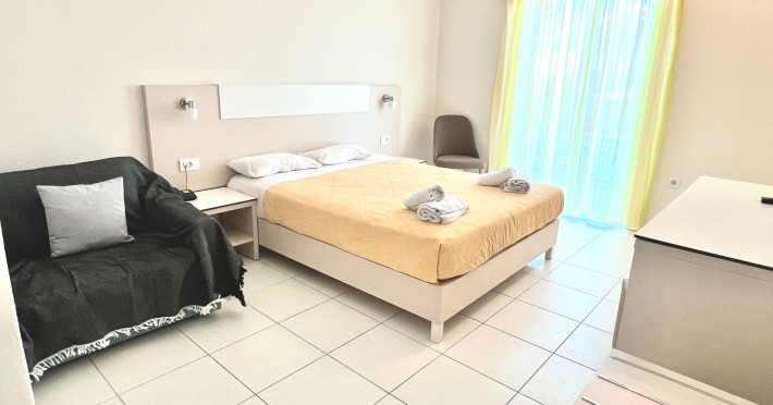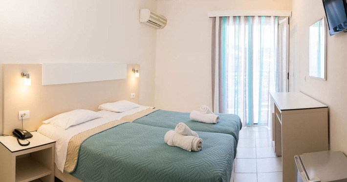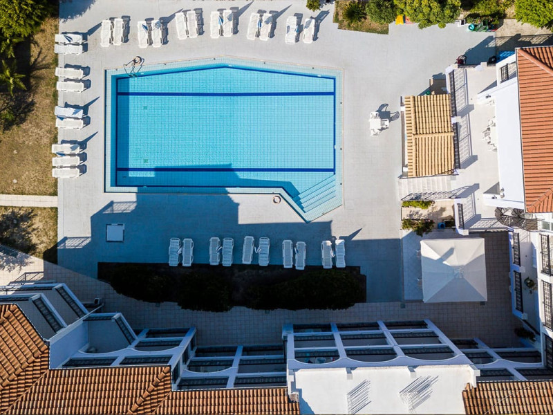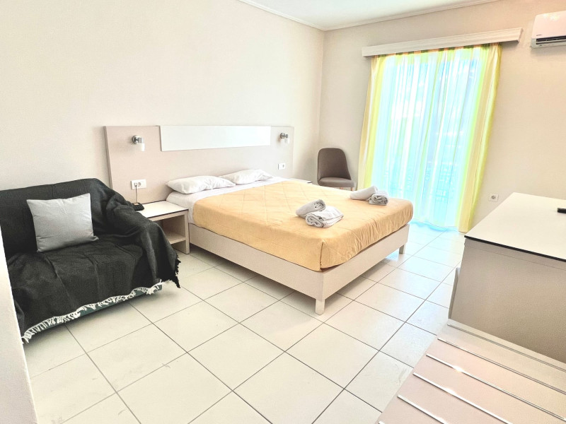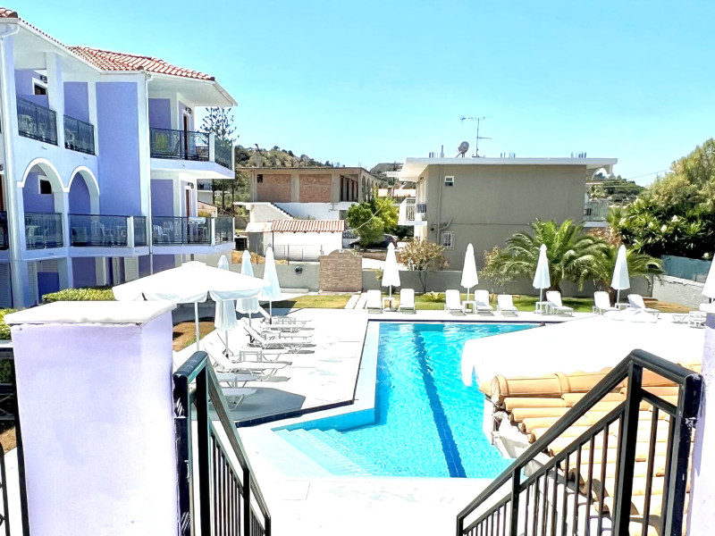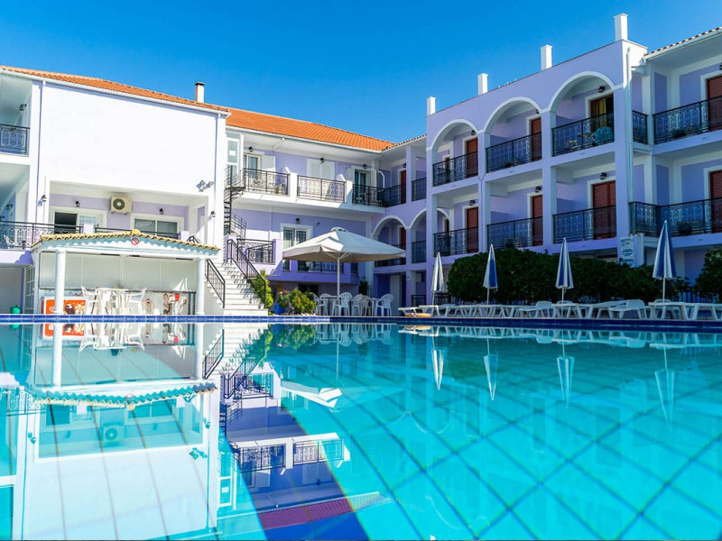 Eleana Hotel is a modern complex situated in the friendly central resort of Argassi on the island of Zakynthos. The hotel is ideal for couples, groups of friends, and families seeking a relaxing and enjoyable holiday. With 44 rooms equipped with necessary facilities, guests can unwind by the crystalline swimming pool or explore nearby beach resorts. Eleana Hotel in Argassi offers a total of 44 comfortable and simply styled rooms, designed to accommodate couples, families, and small groups. Each room features essential amenities such as air conditioning, private balcony or terrace, LCD TV, fridge, telephone, hairdryer and bathroom with shower.Eleana Hotel is conveniently located in the lively resort of Argassi, just a short 5-minute walk from the beach. It is approximately 6 km from Zakynthos International Airport and 3.5 km from the main port. Zakynthos Town is just 3 km away. The hotel's central location also offers quick access to nearby attractions such as Bochali Hill, Kalamaki Beach and the Vasilikos Peninsula, providing guests with both relaxation and the opportunity to explore the island.