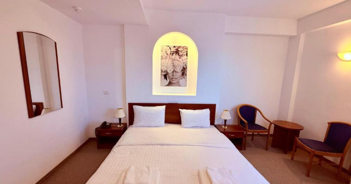 Oferim 30 de camere spatioase si elegant mobilate, dotate cu: Wi-Fi gratuit de mare viteza; Aer conditionat individual; Smart TV cu canale internationale; Minibar, cafetiera, birou de lucru; Baie privata cu cada si bideu.