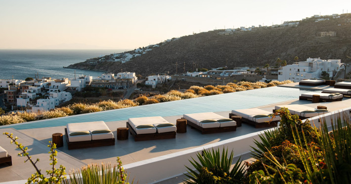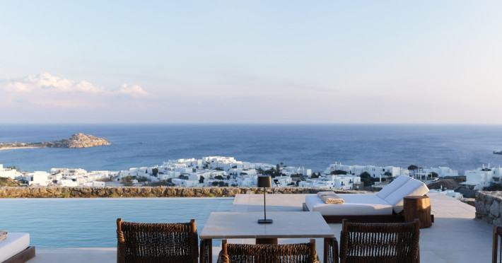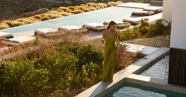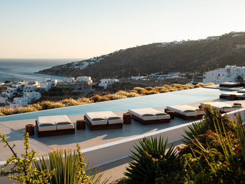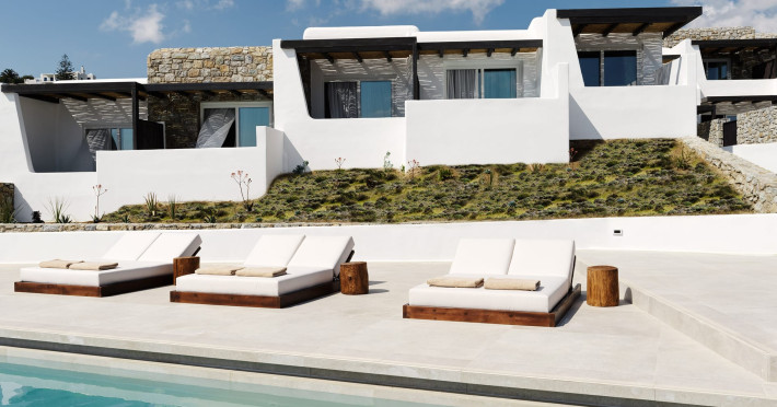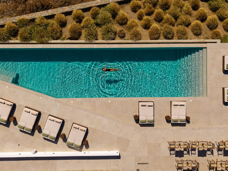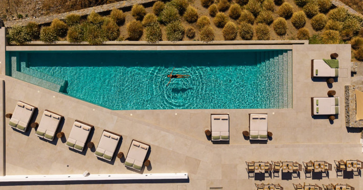 Paying homage to the storied past of the island, Ezio Bo is a new luxury hotel that redefines the concept of style and relaxation in Mykonos. It intervenes the classic Cycladic essence with warm hospitality, a contemporary edge and modern decor, all while celebrating the beauty of its surrounding nature.Olive trees and lush greenery fill the air with fragrance, while the hotel’s main pool offers a cooling respite from the heat of the day. Moments of relaxation thrive here with a view of the pristine Aegean Sea. Every corner oozes timeless opulence and Cycladic style and it welcomes modern travelers to relax in comfort.This is a place where you can let go and find inspiration. A symphony where luxury, beauty, harmony and authenticity of the place promise great comfort.