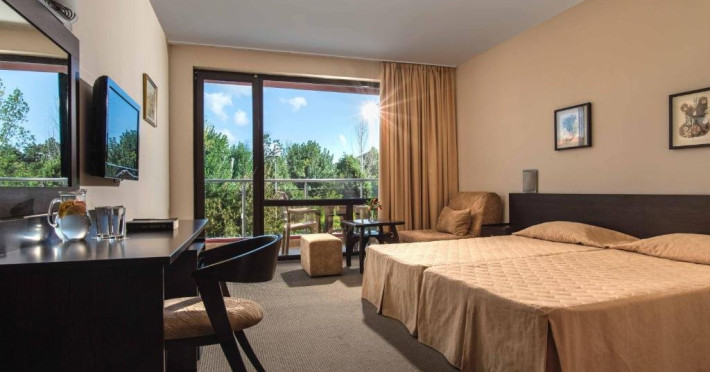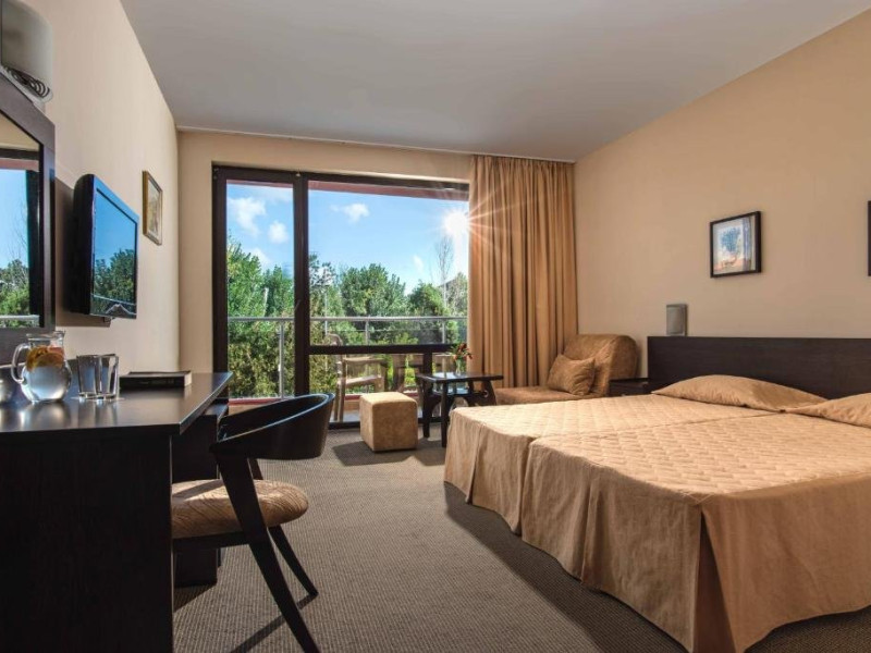- Mic dejun tip bufet /07:30 - 09:30/ - o varietate de preparate calde si reci, specialitati din oua, o varietate de produse lactate, carnati si branzeturi, produse de patiserie, cereale, fructe, ceai, cafea, apa si sucuri. - Cina tip bufet/18:00 - 20:00/ - o selectie de salate si supe proaspete, bogat variate din preparate bulgaresti si internationale, preparate vegetariene si din carne, paste, o selectie de produse de panificatie, bufet dulci cu o varietate de deserturi, apa , sucuri, vin si bere. * Toate bauturile gratuite sunt bauturi la draft si sunt doar in timpul meselor si doar la restaurant! Sport si divertisment: Utilizarea piscinei exterioare Umbrele si sezlonguri la piscina (in functie de disponibilitate) Wi-Fi in zona de receptie Fitness Pentru copii: Loc de joaca Zona de joaca pentru copii in holul hotelului Sectiune pentru copii in piscina Scaune inalte pentru copii in restaurant Servicii plata suplimentara: Bar la piscina si bauturi la barul din hol Internet in camere Servicii medicale Seif, spalatorie Sauna Telefon Serviciu de spalatorie