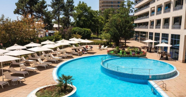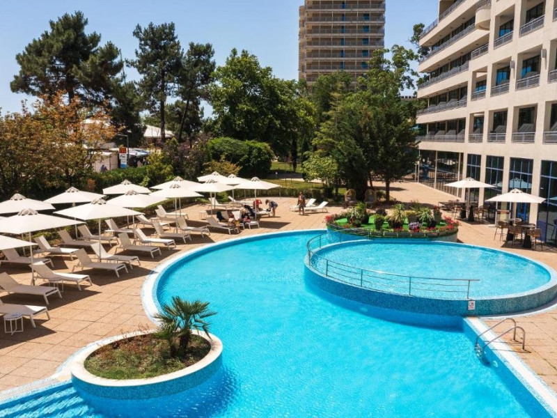 Hotelul este renovat pentru a se alatura renumitului brandului al lantului hotelier Maryott. Localizare: Hotelul este situat la 50 m de centrul statiunii si la 20 m de plaja. Plaja: 20 m. departe, nisipos. Fundul marii este plat, cu acces lin. Bucurati-va de cea mai frumoasa si curata plaja de pe coasta bulgara a Marii Negre, castigatoare a premiului Blue Flag. Cazare: Hotelul are 272 de camere si apartamente. Hotelul are 5 lifturi. DBL 2+1 DELUXE: Aprox. 25 m2. Toate camerele au paturi twin si un pat suplimentar - un fotoliu extensibil 67 x 170 cm., aer conditionat, balcon, seif, ceainic electric, baie cu dus, uscator de par, TV, telefon si minibar. Capacitatea maxima este de 3 adulti. DBL 2+1 DELUXE SEA: Aprox. 25 m2. Toate camerele au paturi twin si un pat suplimentar - un fotoliu extensibil 67 x 170 cm., aer conditionat, balcon, seif, ceainic electric, baie cu dus, uscator de par, TV, telefon si minibar. Capacitatea maxima este de 3 adulti. SUITA 2+1: Aprox. 25 m2. Toate apartamentele au un dormitor cu pat matrimonial si un living cu o canapea extensibila, aer conditionat, balcon, seif, ceainic electric, baie cu dus, uscator de par, TV, telefon si minibar. Capacitatea maxima este de 3 adulti. SUITE 2+1 SEA: Aprox. 25 m2. Toate apartamentele au un dormitor cu pat matrimonial si un living cu o canapea extensibila, aer conditionat, balcon, seif, ceainic electric, baie cu dus, uscator de par, TV, telefon si minibar. Capacitatea maxima este de 3 adulti. DBI 4+2/2+4 DELUXE: Aproximativ 50 m2. Exista 2 camere duble deluxe cu o usa de legatura intre ele. Fiecare dintre camere are doua paturi de o persoana si un pat suplimentar - un fotoliu extensibil cu dimensiunile 67 x 170 cm, aer conditionat, balcon, seif, ceainic electric, baie cu dus, uscator de par, TV, telefon si minibar. Cazarea minima este de 4 persoane - 2 adulti cu 2 copii, 3 adulti cu 1 copil sau 4 adulti. Capacitatea maxima este de 4 adulti cu 2 copii. Patutul de copii este oferit gratuit cu rezervare prealabila. Hotelul dispune de 8 camere potrivite pentru persoane cu dizabilitati. Animalele de companie sunt acceptate - pana la 6 kg si vor fi taxate cu 20 euro pe sejur; nu au voie in zonele cu alimente si ar trebui sa fie intotdeauna in lesa. Despre hotel: Receptie, Restaurant principal, Lobby bar, Pool bar, Seif, Sala de jocuri, Sala de conferinte, schimb valutar, magazine, Acces Wi-Fi in zonele publice. Sport si SPA: Piscina exterioara cu sectiune pentru copii, piscina interioara cu bar. Centrul de relaxare ofera masaje, baie turceasca, baie de aburi. Parcare: 5 eur/zi, pazita, in functie de disponibilitate. Hotelul isi rezerva dreptul de a modifica pretul parcarii in orice moment.