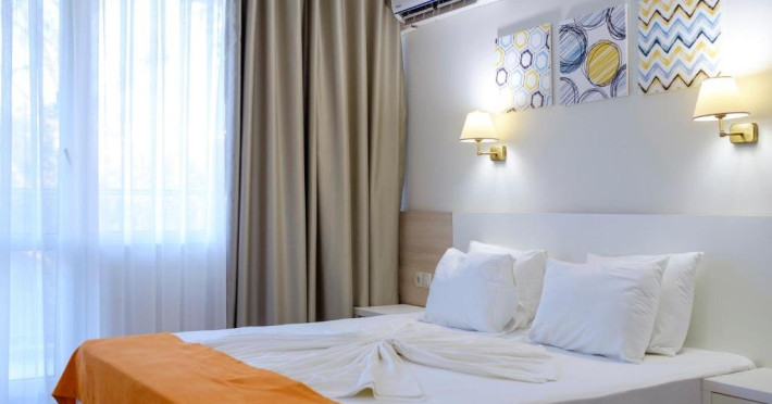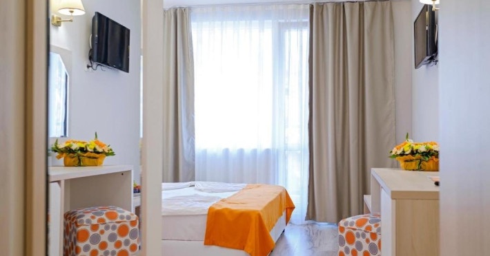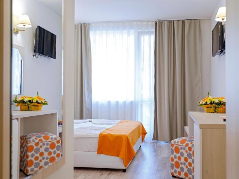 **** Hotelul Garden Nevis este situat la 0,6 km de centrul orasului Sunny Beach, nu departe de Action Aquapark.Parcul acvatic Kuban se afla la 15 minute de mers pe jos. Plaja: cu nisip, la 500 de metri. Fundul marii este plat, cu acces lin. Plaja este castigatoare cu Steagul Albastru. Cazare: Hotelul are 162 unitati, 5 etaje. Sunt 3 lifturi. DBL 2+0: Aprox. 18 m2. Camerele duble sunt formate din doua paturi separate sau un pat dublu. Toate camerele au balcon. Toate camerele sunt dotate cu aer conditionat individual, cu mobilier standard de dulap, birou, noptiere, mini frigider, televizor cu ecran plat, parchet. Schimbarea prosoapelor si a lenjeriei de pat in a patra zi. Cazarea maxima este de 2 adulti. DBL 2+1 SUPERIOR: Aprox 20 m2. Camerele superioare sunt formate din doua paturi separate sau un pat dublu. Pat suplimentar - fotoliu extensibil. Toate camerele au balcon. Toate camerele sunt dotate cu aer conditionat individual, cu mobilier standard de dulap, birou, noptiere, mini frigider, televizor cu ecran plat, parchet. Schimbarea prosoapelor si a lenjeriei de pat in a patra zi. Cazarea maxima este de 3 adulti FAM 2+2: Aprox.25 m2. Camerele de familie sunt formate dintr-o unitate cu pat dublu sau doua paturi separate si un living (nu exista usa despartitoare). Pat suplimentar - canapea extensibila. Toate camerele au balcon. Toate camerele sunt dotate cu aer conditionat individual. Camerele au mobilier standard de dulap, birou, noptiere, mini frigider, televizor cu ecran plat, parchet. Schimbarea prosoapelor si a lenjeriei de pat in a patra zi. Capacitatea maxima de cazare este de 4 adulti. 1-BR APP 2+2: Aprox. 30 m2. Apartamentele constau dintr-un dormitor cu paturi twin sau un pat dublu si un living (separat printr-o usa). Pat suplimentar - canapea extensibila. Toate camerele au balcon. Toate camerele sunt dotate cu aer conditionat individual. Camerele au mobilier standard de dulap, birou, noptiere, mini frigider, televizor cu ecran plat, parchet. Schimbarea prosoapelor si a lenjeriei de pat in a patra zi. Cazare maxim 4 adulti. *Este permisa gazduirea unui copil peste capacitatea maxima a camerei. Patutul de copii este disponibil gratuit, la cerere prealabila. Nu este permisa cazarea cu animale de companie. Hotelul are un apartament potrivit pentru persoanele cu dizabilitati. Despre hotel: Hotel Garden Nevis ofera Wi-Fi gratuit pe intreg teritoriul, restaurant principal, doua baruri/lobby bar si snack bar la piscina/, sala de sport si parcare. Sport si divertisment: Hotelul are o piscina. Hotelul ofera un program de activitati distractive si creative pentru copii in timpul zilei si diverse evenimente de divertisment pentru adulti - muzica live, spectacole si multe altele.